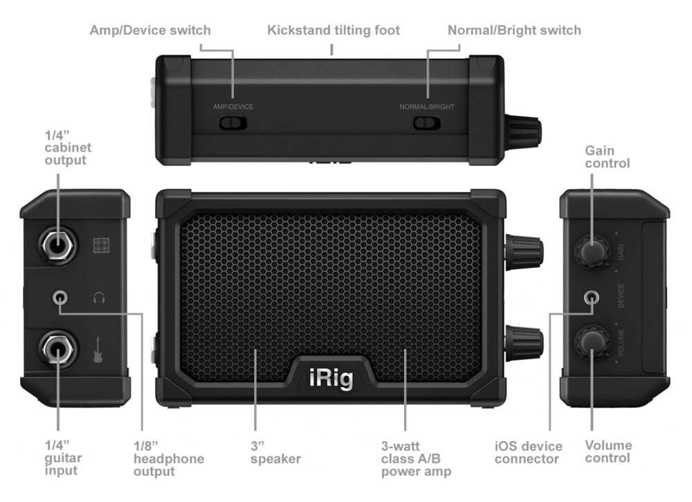 What makes iRig Nano Amp so unique is that you can operate it in two different modes: AMP & DEVICE. In AMP mode it’s a standalone amp for impromptu practice anywhere. In DEVICE mode you use it as an interface and amp for your iOS device.