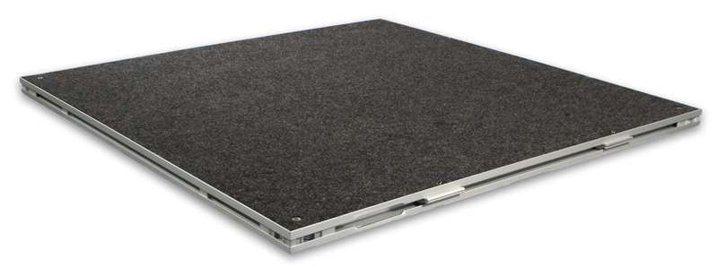 1m x 1m Carpet Finish Stage Platform (single pack). Square and rectangular stage platforms are the most common and versatile stage platform as they allow for near endless combinations and stage expansion. Square and rectangular platforms act as the main b