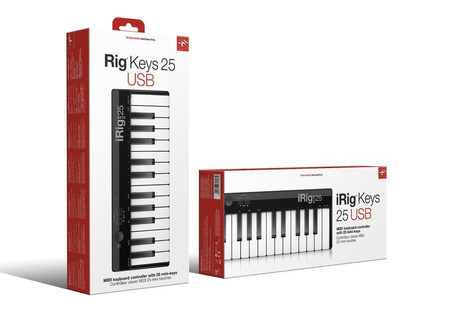iRig Keys 25 is an ultra-portable, ultra-affordable 25-key USB MIDI controller for Mac/PC. Its 25 velocity sensitive mini-keys provide a generous 2 octave range (plus 1 note), which also happens to make for a compact size that's perfect for stashing in your laptop or gig bag or backpack.