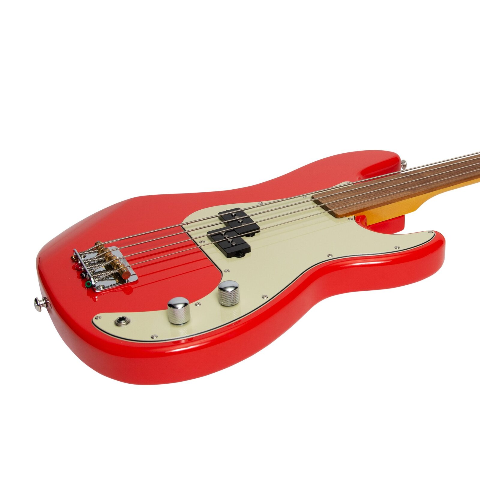 The JD-PB63F-RED is an innovative take on the iconic P style bass design which features a fretless fingerboard, providing truly unique tone and playability at an unprecedented price.