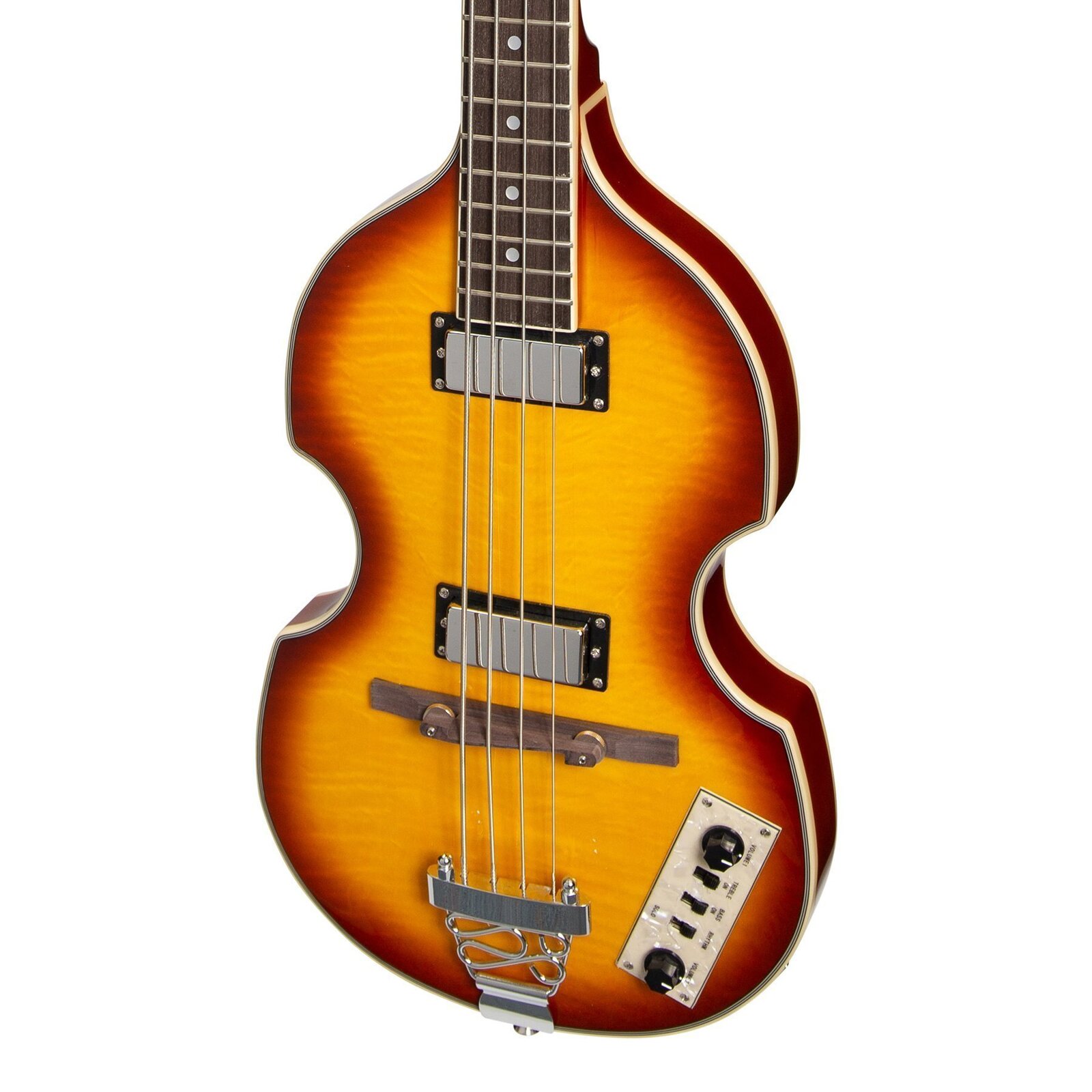 J&D Luthiers 4-String Violin-Style Electric Bass Guitar (Honey Burst)
