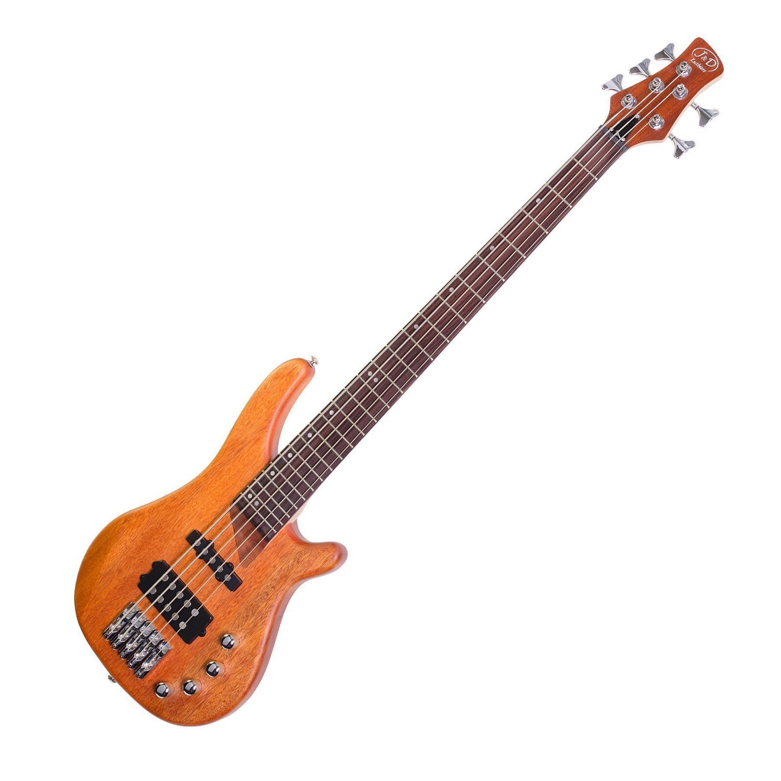 The J&D RM5 Active Contemporary bass provides outstanding tone and playability, with the extended sonic range of a 5-string bass, at an unprecedented price. Each J&D RM Contemporary bass is constructed from historically proven tone woods and is equipped with an active pickup system. Active pickups provide modern tone and clarity unavailable from traditional passive circuitry. The J&D RM Contemporary series comes standard with Chrome hardware, individual tailpiece bridge, active humbucker/single coil pickups with Volume, Balance, Treble and Bass controls.