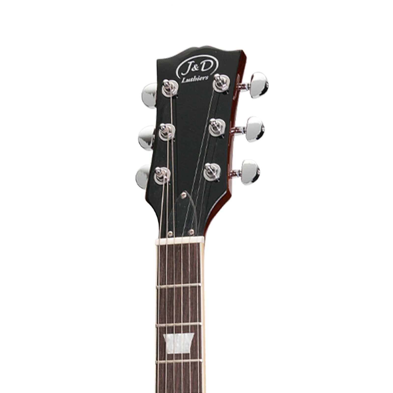 The J&D Luthiers LP Custom style electric guitar sounds as vintage as it looks. Thanks to its traditional mahogany body and set neck construction, the J&D LP Custom produces tonal warmth and powerful sustain. Featuring chrome hardware, deluxe binding, humbucking pickups, dual tone and volume controls, 3-way toggle switch, speed knobs and crown style inlays, the J&D LP Custom is an affordable rock n roll machine.