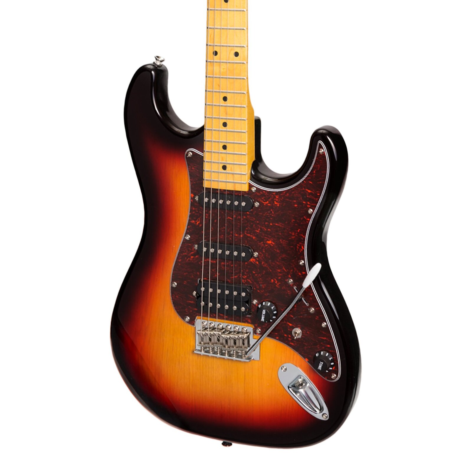The J&D Traditional ST guitar provides authentic vintage tone and playability at an unprecedented price. Each Traditional ST guitar is constructed from historically proven tone woods, features the classic 5-way switch, master volume and two control configuration, as well as a vintage style tremolo bridge and deluxe red tortoise-shell pickguard. Loaded with humbucker/single coil/single coil pickups, J&D have ensured there's no genre of music the Traditional ST can't excel at.