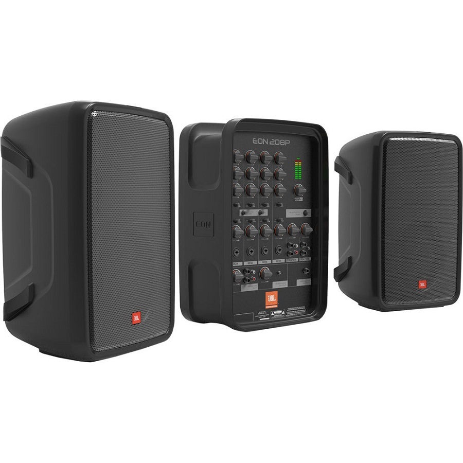 The 8-channel detachable mixer gives you the power and flexibility to sculpt your sound and be heard with stunning clarity at any venue. Simply connect your mics, instruments and other sound sources and start performing. The intuitive mixer helps you dial-in great live sound quickly and easily. EON208P puts professional audio within arm's reach—literally. The twin 8” speakers and 8-channel mixer clip together to form the most comprehensive, lightweight and portable PA in its class. Carry it in one hand with a guitar slung over your shoulder to play coffee shops and medium-size gigs. Or turn a backyard into the hottest nightclub around. With uncompromising JBL sound quality and effortless portability, you’ll want to take it everywhere. The versatile enclosures facilitate stacking, pole mounting and use in monitor position.