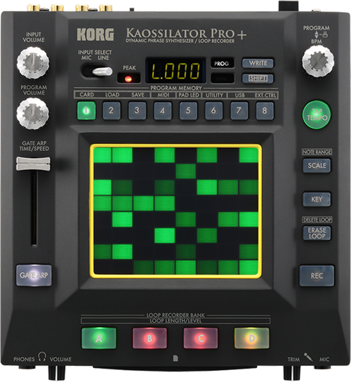 2013 brings us to the upgraded KAOSSILATOR PRO+. With additional new sound programs and drum sounds KAOSSILATOR PRO+ has been supercharged to offer even more variety and exploration. A total of 250 sound programs (including drum programs) cover a wide range of styles, including 62 new programs. Freely playable synthesizer; simply touch the touchpad to play notes and manipulate sounds in real time. Loop Recording function allows intuitive performance and recording, and 4 infinitely stackable loop banks are available.