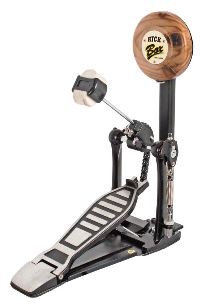 The pedal features completely adjustable spikes for improved traction on level ground, in addition to height and tension adjustments. The same range of tones as the other Box models can be obtained by adjusting the beater to strike the plate in various places.