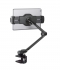 A stylish and functional holder for smartphones and tablets with a table clamp. Holder accommodates devices from 10.2 to 13" (diagonal) in size, corresponding to a clamping range from 130 to 224 mm (horizontal). The brackets and mounting surface are covered with non-slip rubber for added stability and peace of mind and a delicate grip. The ball joint head permits endless adjustable, individual positioning. The expansion arm pivots 360° and can be changed separately in angle, point, and swivel range. The clipping scope of the table brace is from 10 to 35 mm. The clamp surfaces are coated with rubber, protecting the table from damage.