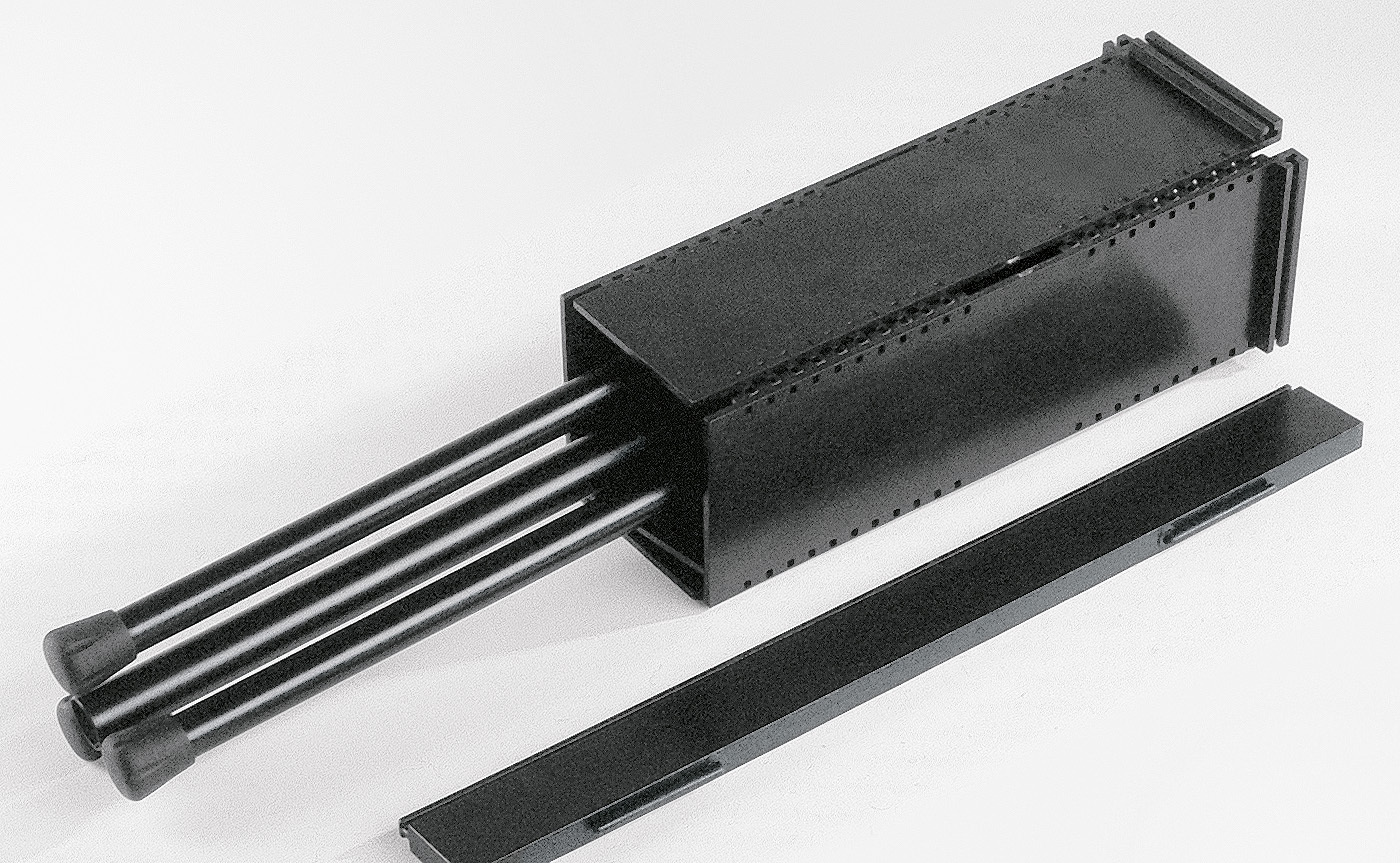 A lightweight orchestra music stand with collapsible music desk made of plastic; perfect for mobile use. The stand comes with a black nylon bag for easy carrying.