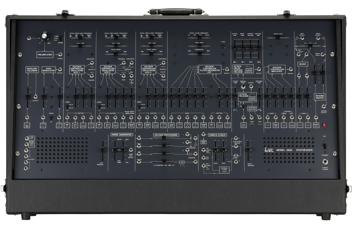 Unlike earlier modular synthesizers that relied on bulky 6.3mm (1/4") jacks and patch cords, the ARP 2600 uses a more streamlined 3.5mm (1/8”) jack that allows for more patch points to occupy the same amount of panel space, delivering more options and more versatility. Most of the patch points are arranged in a single row below the controls of the individual sound modules. This arrangement keeps the main panel clear and unobstructed for tweaking the controls during performance. Needless to say, these patchable connections and the onboard processors can be used to interact with nearly any modular or Eurorack synthesizer system.