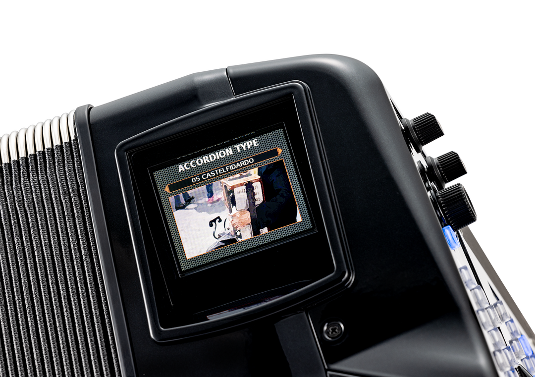 Navigating the extensive features of the FISA Suprema is made simple with its full-color screen and user-friendly menus. The physical controls and shortcuts are designed for ease of use, allowing you to focus on your performance without any technical distractions. To help with live performance, the FISA Suprema also provides the choice of an “easy” or an “advanced” mode. “Easy” mode gives you the simplicity of a simple acoustic accordion, while “advanced” mode unlocks huge creative possibilities.