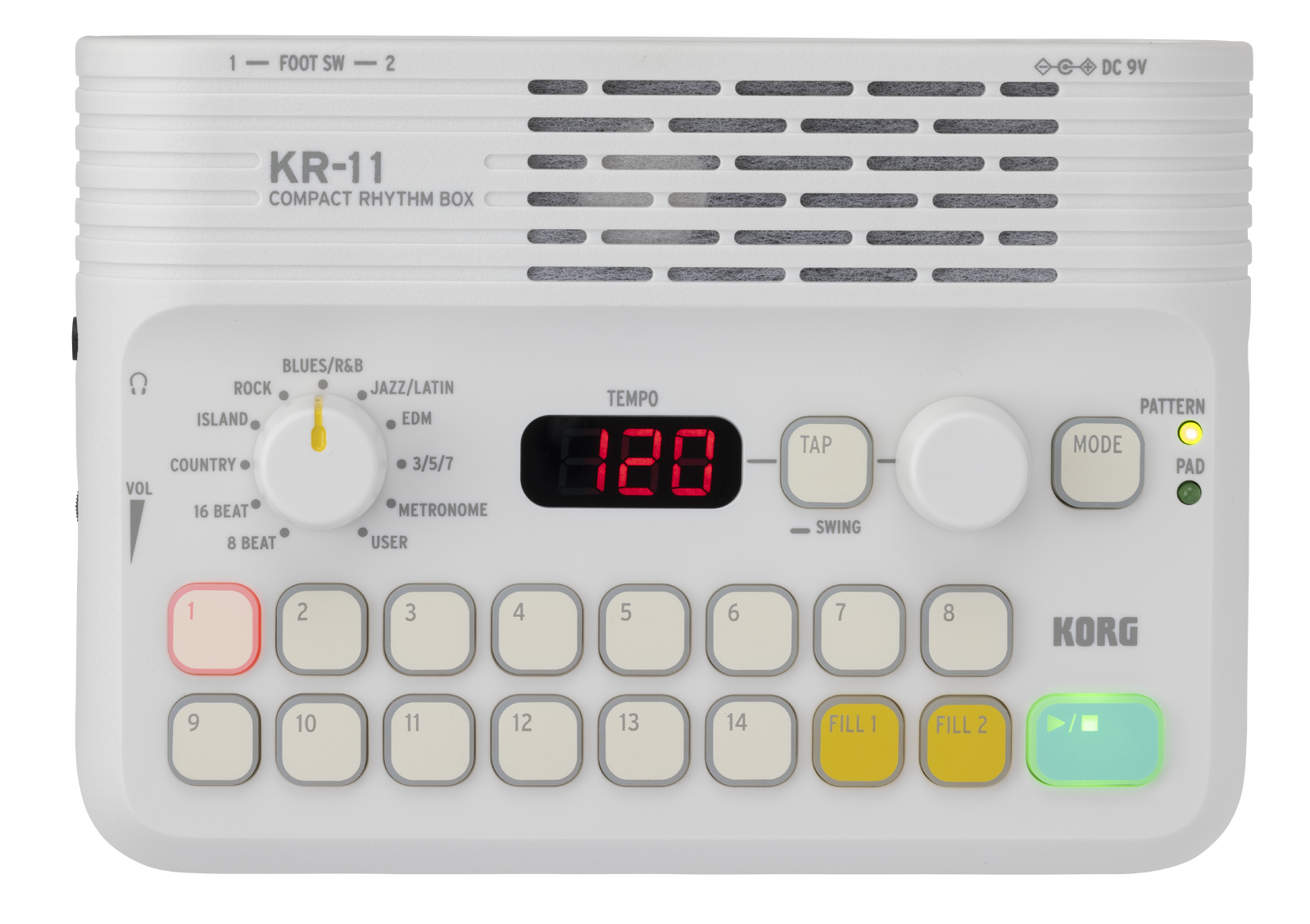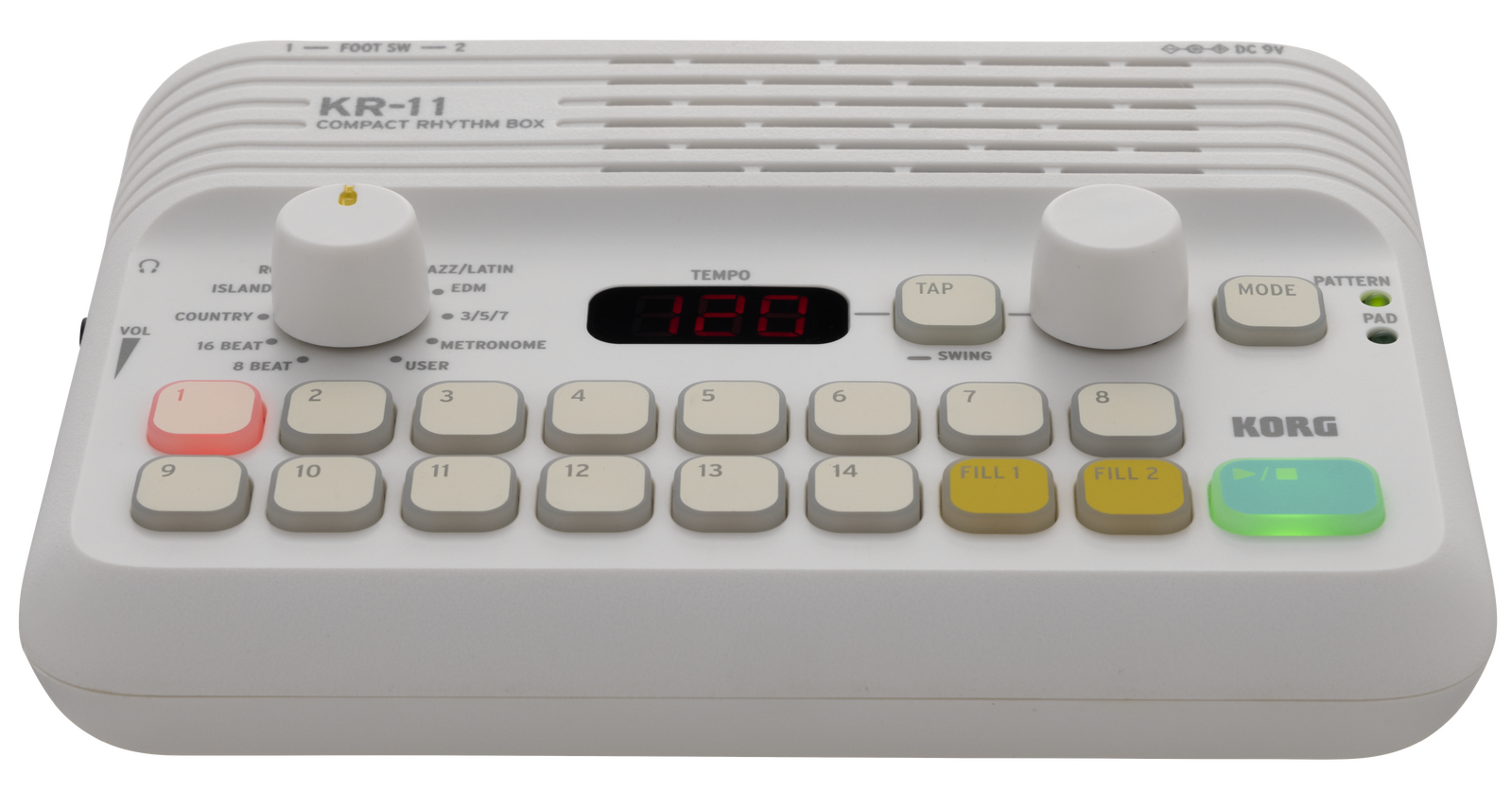 The KR-11 compact rhythm box brings to the modern era the rhythm machine legacy that the legendary Korg Doncamatic famously started in 1963.