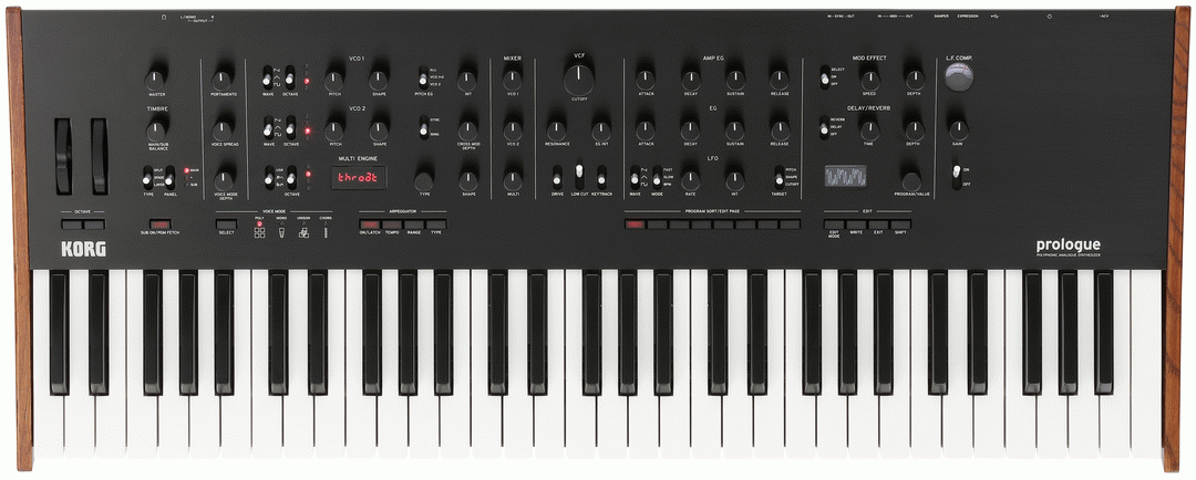 Prologue is a polyphonic analog synthesizer equipped with a full-sized keyboard. With powerful analog circuits that are descended directly from the earlier models of the series, together with a newly developed digital multi engine and gorgeous DSP-based effects, prologue expands the variety of sounds and the possibilities for user customization.