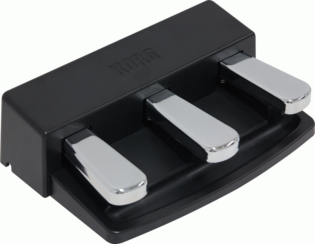 A pedal unit with three pedals, and ideal for piano practice with the grand piano footprint