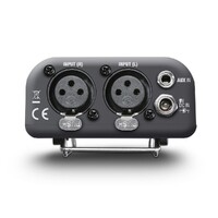 In addition to locking XLR connectors for the stereo signal L/R input, the HPA 1 has a balanced 3.5 mm stereo jack as AUX input, which can be used in parallel for clicks or playback. It is protected for safe operation against excessive input levels; a hollow pin socket with negative internal contact enables the connection of a network adapter for fixed operation.