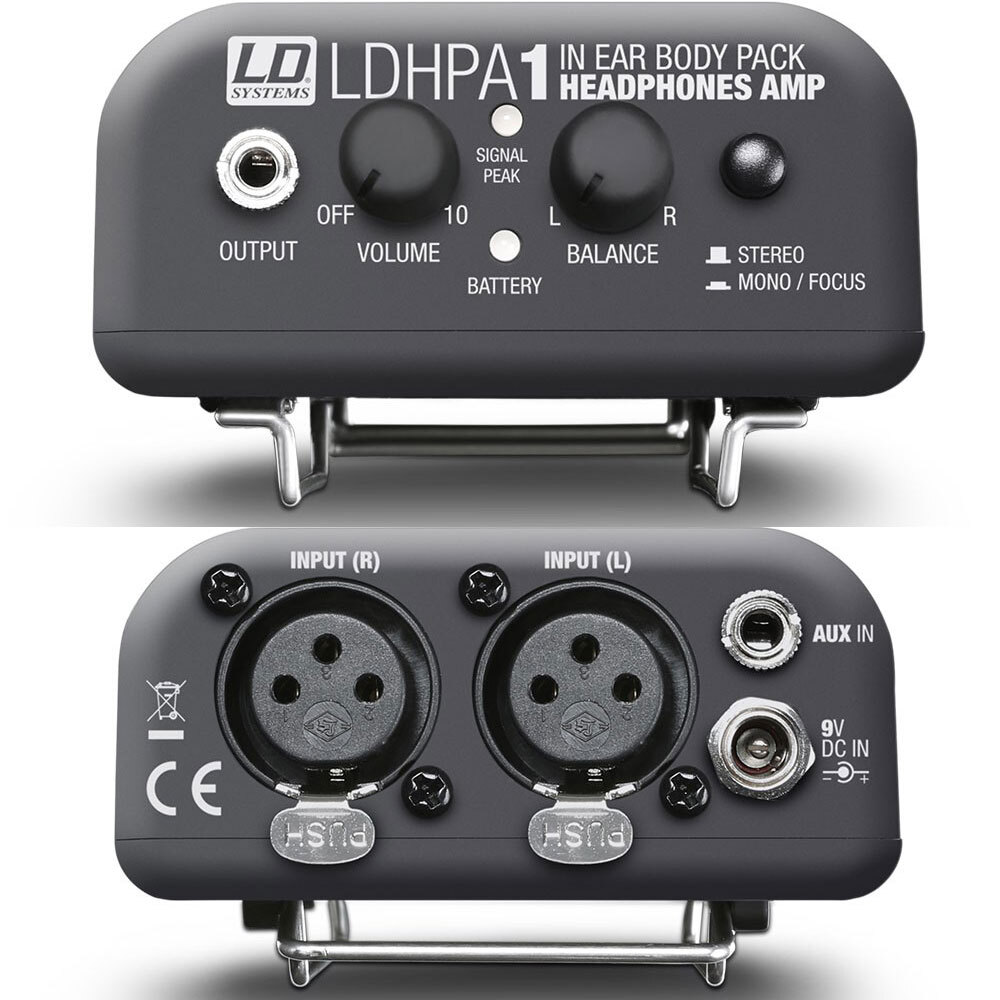 The LD Systems HPA 1 is a versatile headphone amplifier with high power output for stage, studio and home recording and is the perfect solution for wired in-ear-monitoring.. The compact device in a rugged, ergonomically shaped plastic housing with soft-touch surface and practical belt clip is very extensively equipped.