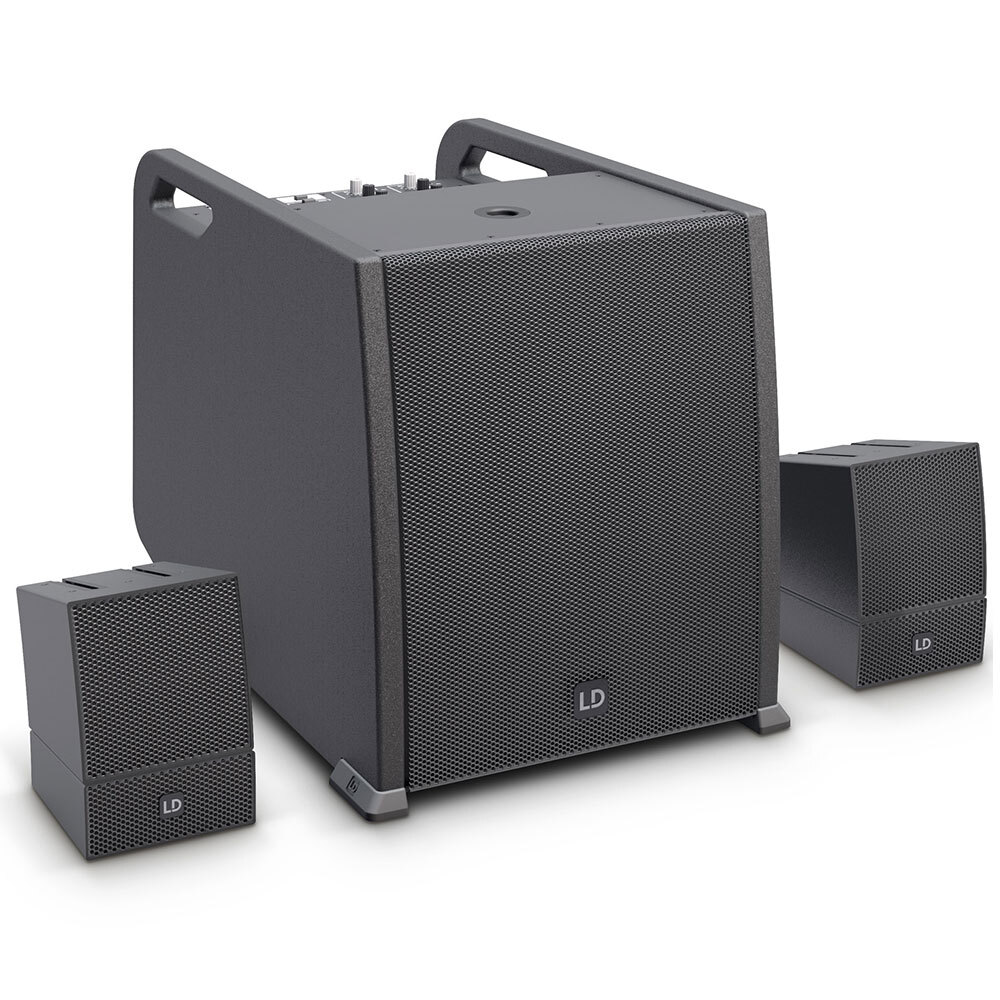 The two satellites are operated via SmartLink® adapters. The elements, only 12 x 12 cm in size, are equipped with LD System's own WaveAhead® technology; one 4" and three 1" drivers provide a coherent and extremely detailed playback with high pressure and dynamics.