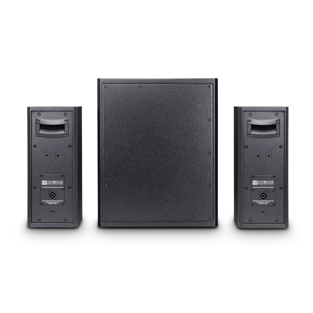 Sturdy front grilles and ergonomic handles on both the subwoofer and the satellites underscore the roadworthiness of the DAVE 8 Roadie and make the system an ideal companion for musicians.
