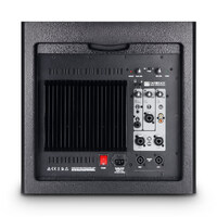 The DAVE 8 Roadie features three different inputs, which can be used simultaneously. One channel has a combo socket (XLR/jack) for dynamic microphones. One channel offers dual RCA connectors for computers as well as a combo socket (XLR/jack) for mixers or keyboards. Finally, the third channel has a 3.5 mm stereo and a 6.3 mm mono jack input for MP3 players or guitars with a switch for selecting the desired input. The high-performance Class A/B power amp module integrated in the subwoofer powers both the subwoofer and the satellites.