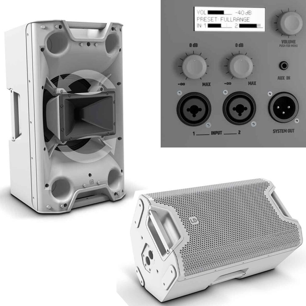 The outstanding bass reproduction from the horn-loaded woofer makes the LD ICOA 12 A W the ideal choice for musicians, bands, entertainers and dance schools. It also allows DJs to play sets without the need for a subwoofer. Deployed vertically, the speaker impresses as a satellite; horizontally, it's excellent in suspended systems or as a floor monitor. The efficient class-D power amplifier delivers 126 dB max. SPL and 1200 W peak performance. The white version with a white grille blends in subtly into any environment and doesn't distract.