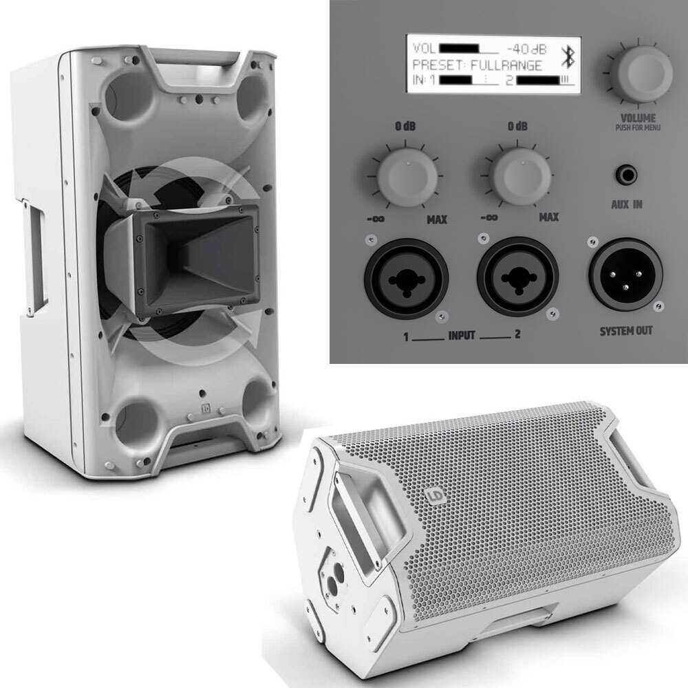 The outstanding bass reproduction from the horn-loaded woofer makes the LD ICOA 15 A BT W the ideal choice for musicians, bands, entertainers and dance schools. It also allows DJs to play sets without the need for a subwoofer. Deployed vertically, the speaker impresses as a satellite; horizontally, it's excellent in suspended systems or as a floor monitor. The efficient class-D power amplifier delivers 128 dB max. SPL and 1200 W peak performance. Especially the version with white housing and white front grille blends discreetly and unobtrusively into almost any environment.