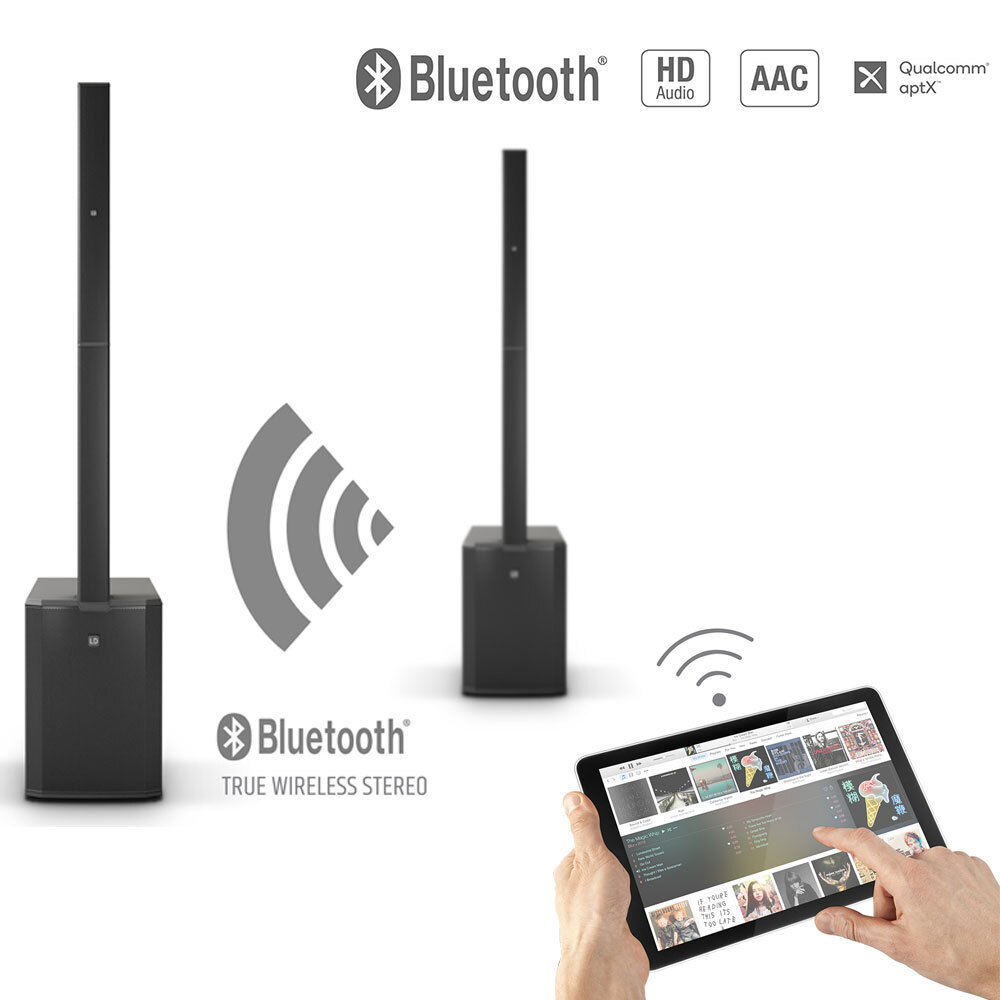 In the case of permanent installations or when providing sound for conferences, the TrueWireless stereo function makes life a whole lot easier since it enables two systems to be wirelessly connected for stereo reproduction. Bluetooth® streaming in HD quality is no problem at all thanks to aptX and AAC Codec, while DynX® DSP technology ensures distortion-free sound reproduction even at the very highest volumes. Total and subwoofer levels can be individually adjusted, providing a perfectly balanced sound in all situations, with a crystal-clear treble, a crisp mid-range and - thanks to the flow-optimised bass-reflex channels - a powerful bass.