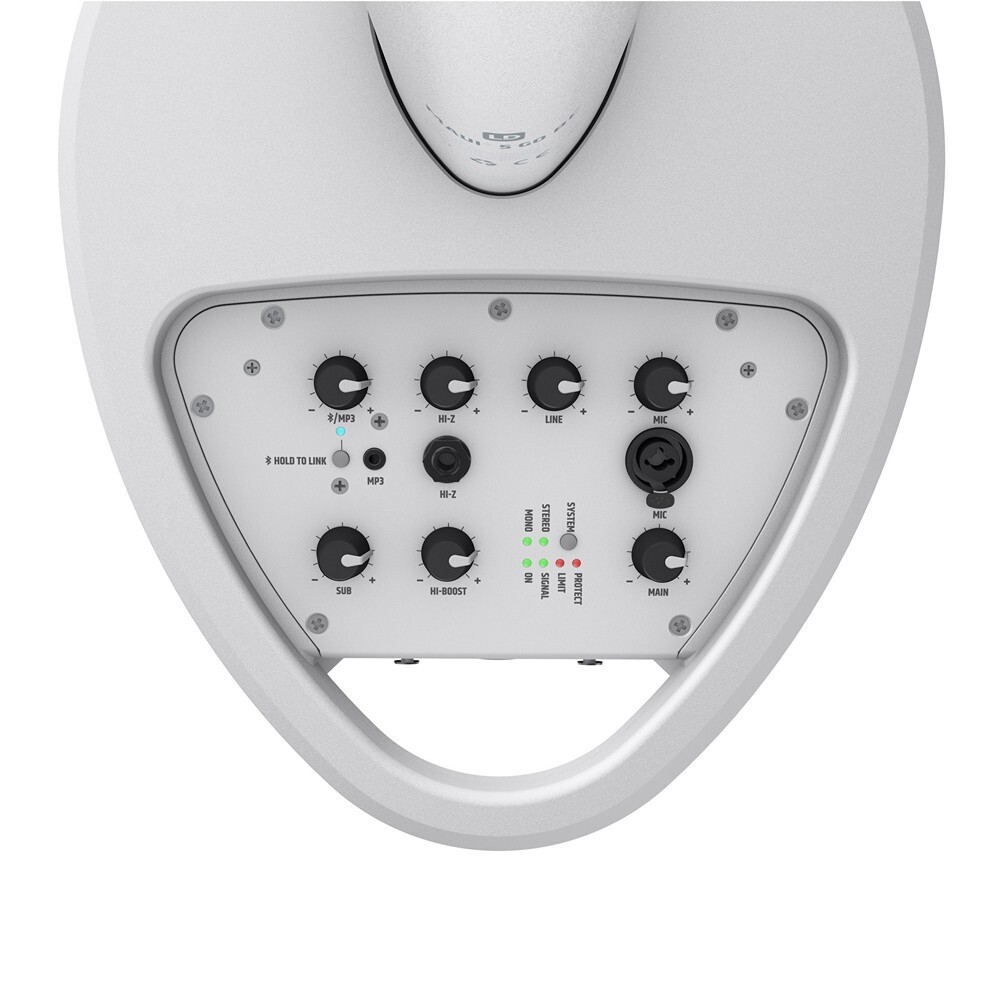 For unparalleled sound quality in all applications, the column system features LD Systems' LECC DSP with multi-band limiter, equalizer, compressor and crossover. The integrated 4-channel mixer provides separate volume controls for the input channels, sum and subwoofer as well as a variable high-frequency boost to facilitate fast and balanced adjustment to the sound. In addition, LD Systems' Quick-Swap-Technology® enables the immediate, problem-free replacement of the battery element and thus offers the possibility of extending the operating time of the MAUI® 5 GO 100 as desired.