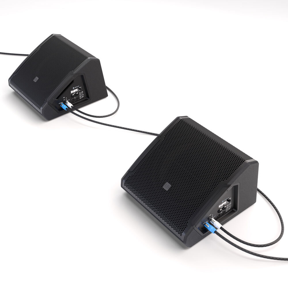 Both the signal (XLR/jack combo) and the power connection (PowerCON compatible) can be looped through. This allows for elegant, tidy cabling in multi-monitor set-ups or for distributed sound reinforcement.