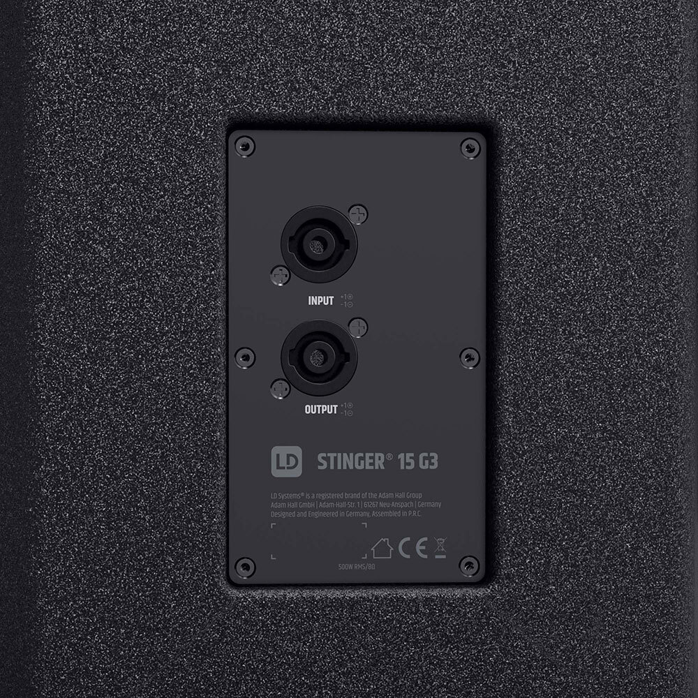 This highly professional 2-way loudspeaker is designed for absolute, long-term reliability. With its multifunctional bass reflex cabinet as a full-range speaker, satellite and ground monitor, it is suited to mobile and fixed PA systems. The STINGER® 15 G3 provides 500 watts of continuous power; the maximum sound pressure level is 127 dB. Its specially developed 15" woofer and the BMS HF driver achieve a powerful bass reproduction and fresh natural highs. The wave guide of the tweeter has been developed using the Boundary Element Method (BEM), a numerical simulation of the sound radiation and dispersion. It reduces reflections from the floor and ceiling and prevents sidelobe levels and thus achieves a controlled and homogeneous dispersion.