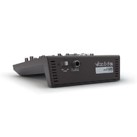 The VIBZ 6 is a compact 6-channel mixer which is perfectly suited to entertainers, small bands, home recording and installations. It features two balanced microphone inputs with high quality preamps, phantom power and 3-band EQ with +/-15 dB adjustment scope, two stereo line inputs with 2-band EQ, which are mono-compatible, and an effects loop.