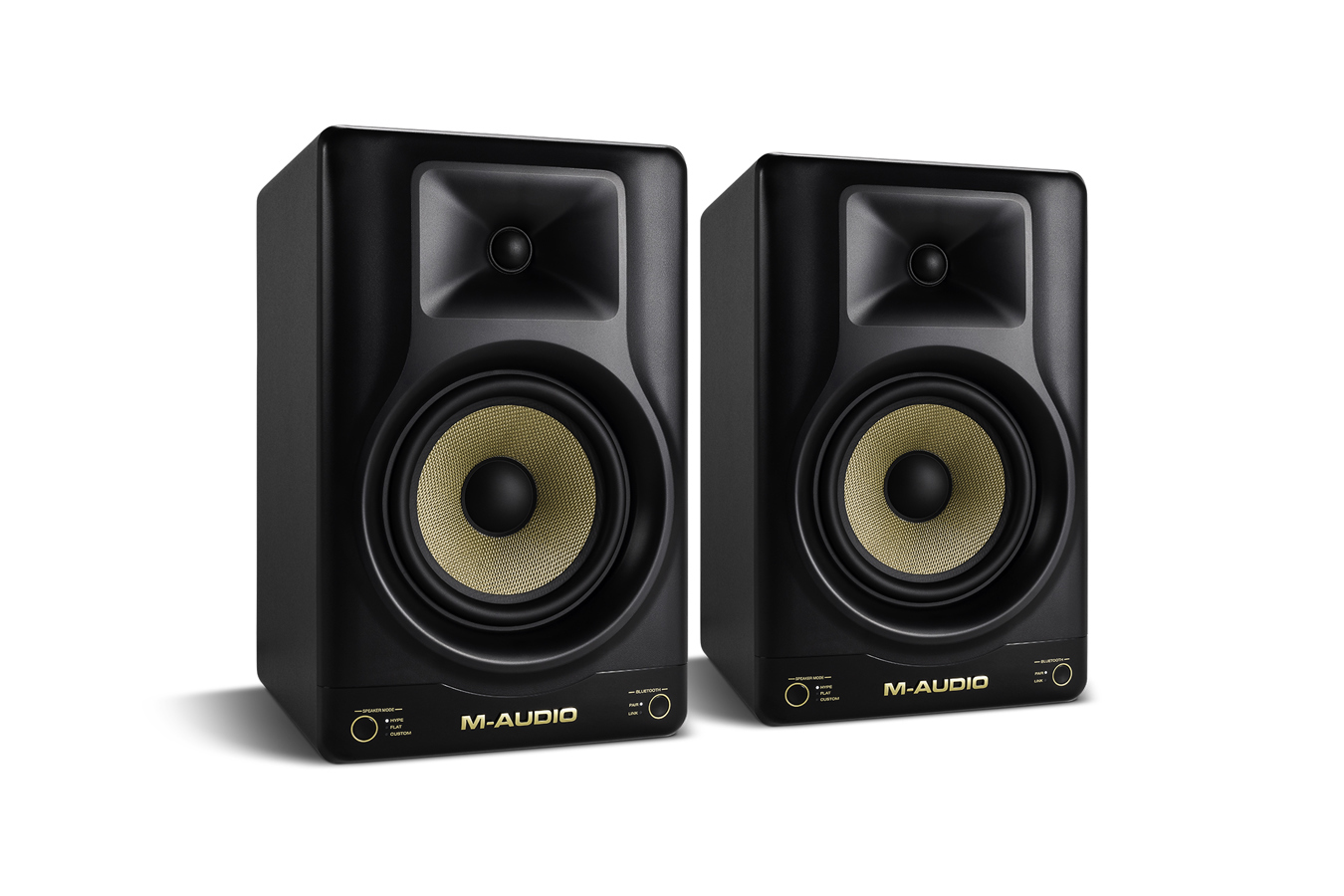 We appreciate the time and precision that goes in to delivering a perfected final mix down, but we also understand that music is enjoyed outside of a perfectly treated acoustic room. To address this, we designed a simple front panel button that allows you to easily switch from a ruler-flat mix reference to HYPE mode that emulates a mix common in ear buds and car stereos. Beyond that, experiment with a custom mode where you can specifically define all parameters of your sound with the M-Audio Forty Series Control App