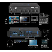 B.Beat PRO16 has two HDMI video outputs, this is because on stage there is often the need to have a Video Wall supporting musical performances, and at the same time the display of Lyrics in the Prompter version. Song lyrics can be written and synchronized very easily through the B.Beat Manager program. The same can be done with the Sheet Music, which can be uploaded as PDFs and for each instrument on the stage you can have a dedicated music sheet. The sheet music can be viewed on Smart Devices via Wi Fi.