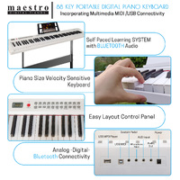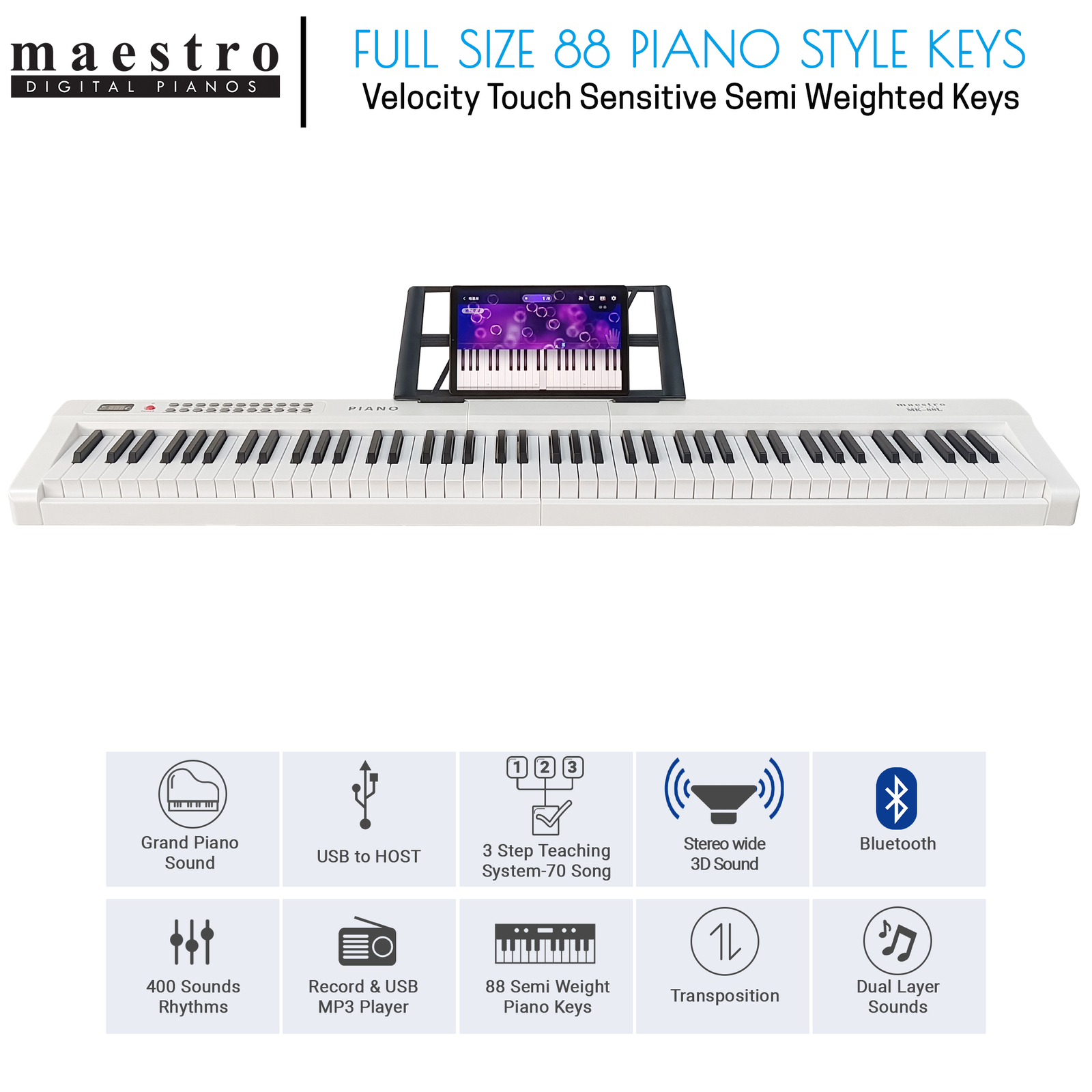 Maestro Beginner 88-Key Touch Sensitive Digital Piano Full-Sized Keyboard Bluetooth-Stand -White, USB & MP3 Player