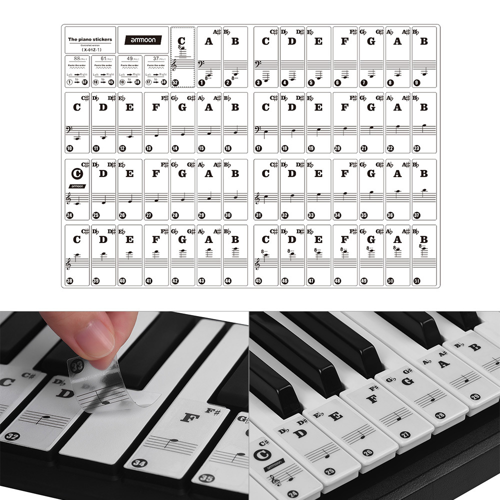 - KEYBOARD GUIDE STICKERS to assist you in learning the position and names of notes and Keys