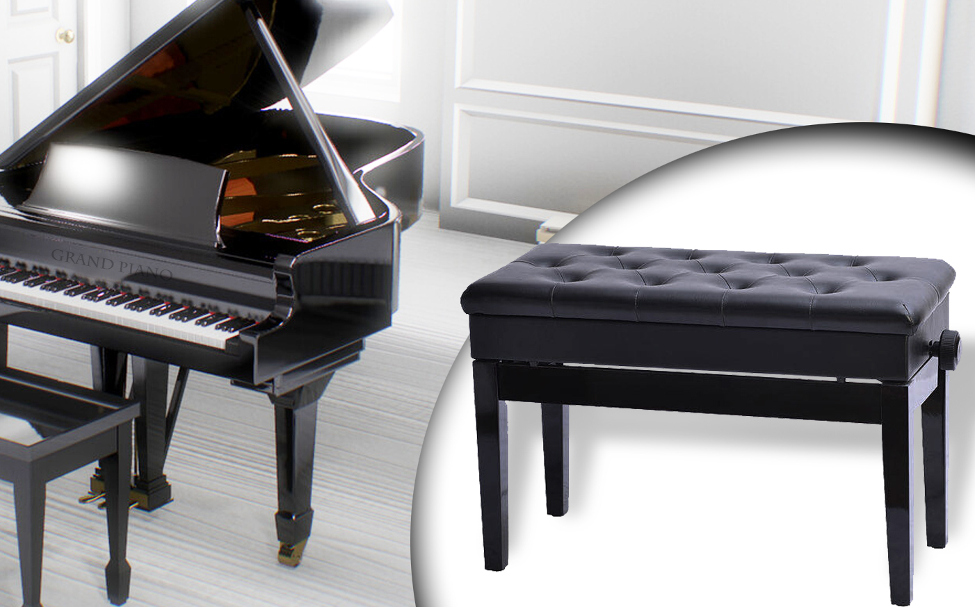 This Bench is beatifully designed and built to last THe Maestro Brand is synonymous with Quality at the right price and here we present to you an Adjustable Piano Bench Wooden Piano Stool with Music Storage & Height Adjustable capability - This is complete with a PU Leather heavily padded and super comfortable seat and Solid Wood Black GLOSS elegant finish