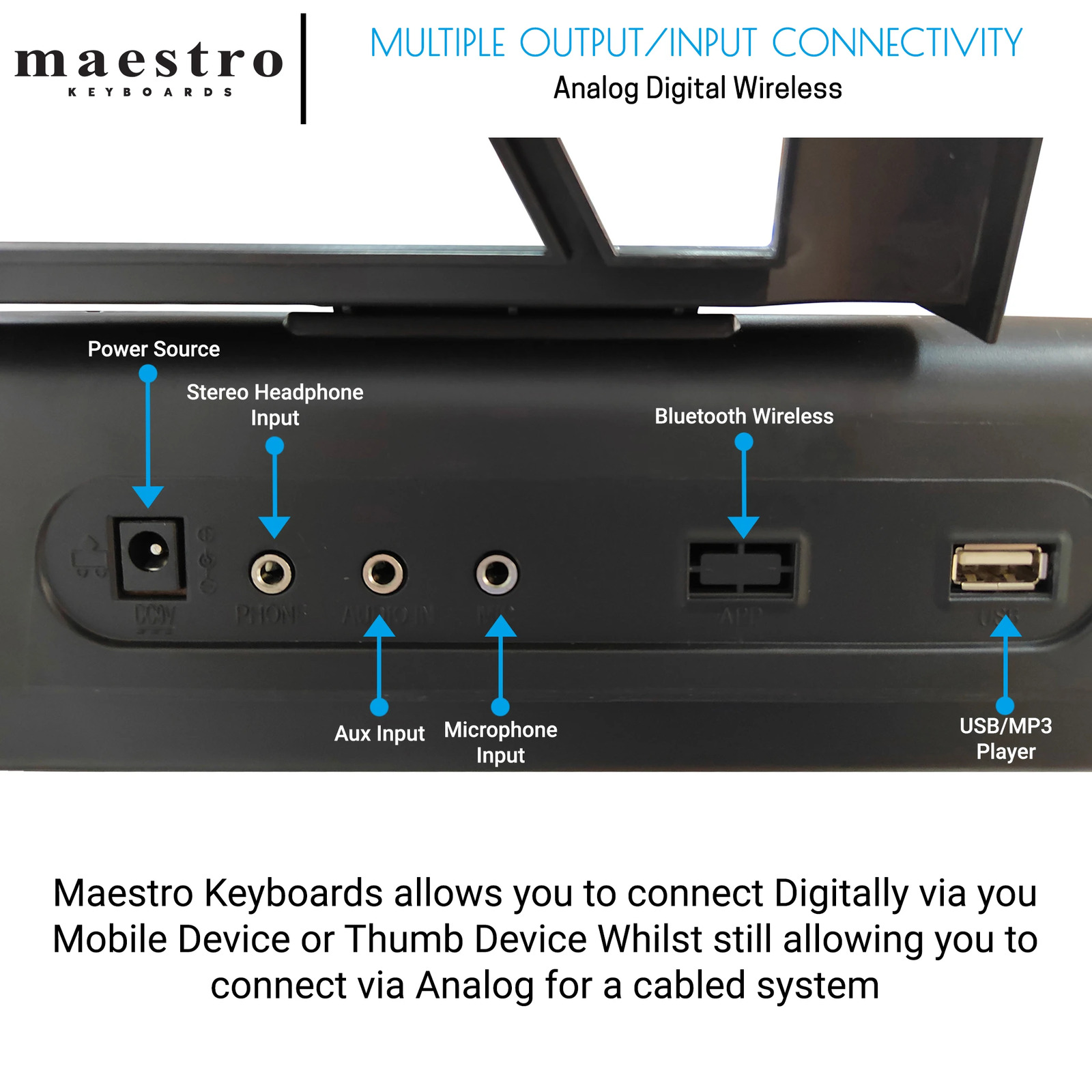 The Maestro L400 has it ALL and is the Next step for value beginners to intermediate student keyboard equipped with 61 Piano Box style keys, 3-step lighting teaching system, Bluetooth streaming and USB MP3 player for audio playback, plus 200 Sounds and 200 Rhythms.