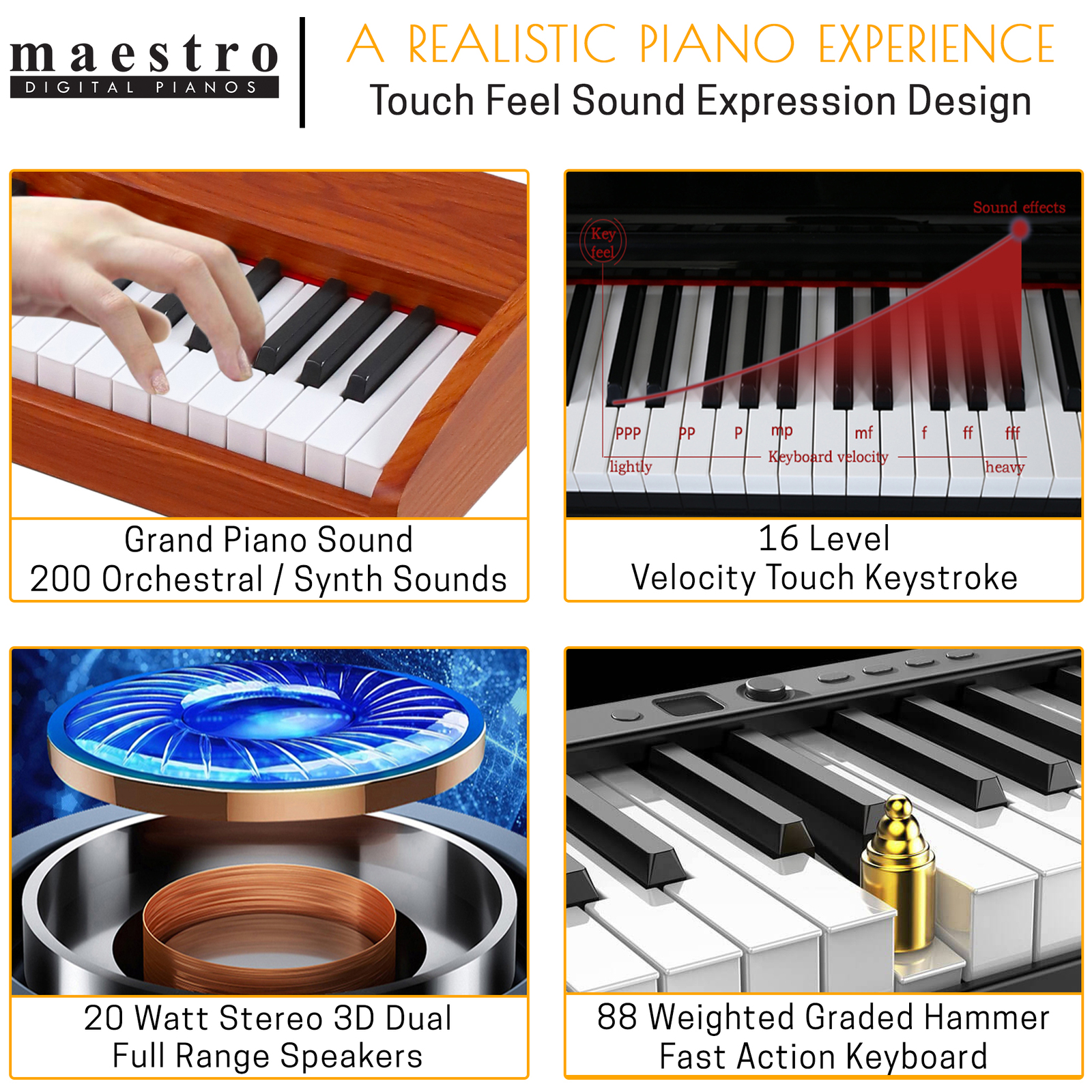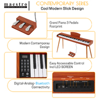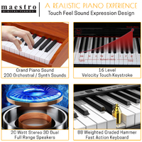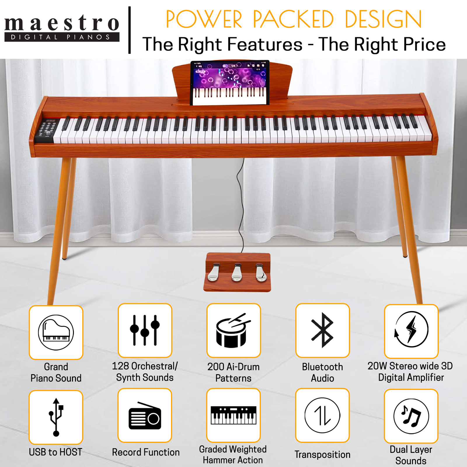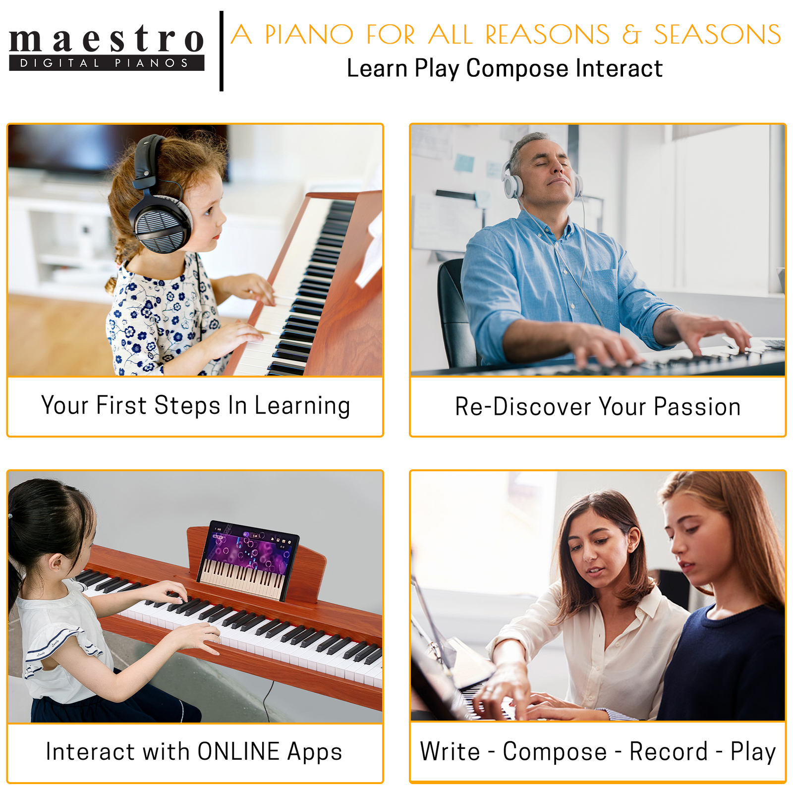Maestro pianos provide great functionality and playability, giving students a pleasant experience beginning their musical journey in the world of playing, performing or composing - with a multitude of features as you will see below.