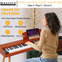 For the Singer Songwriter or Hobbyist, Maestro pianos come with single note Advanced Intelli-Chord function. It will follow your chords so that can also feel what it's like to play with a band and sound like a pro with a built-in drums, bass, guitar and other band instruments.