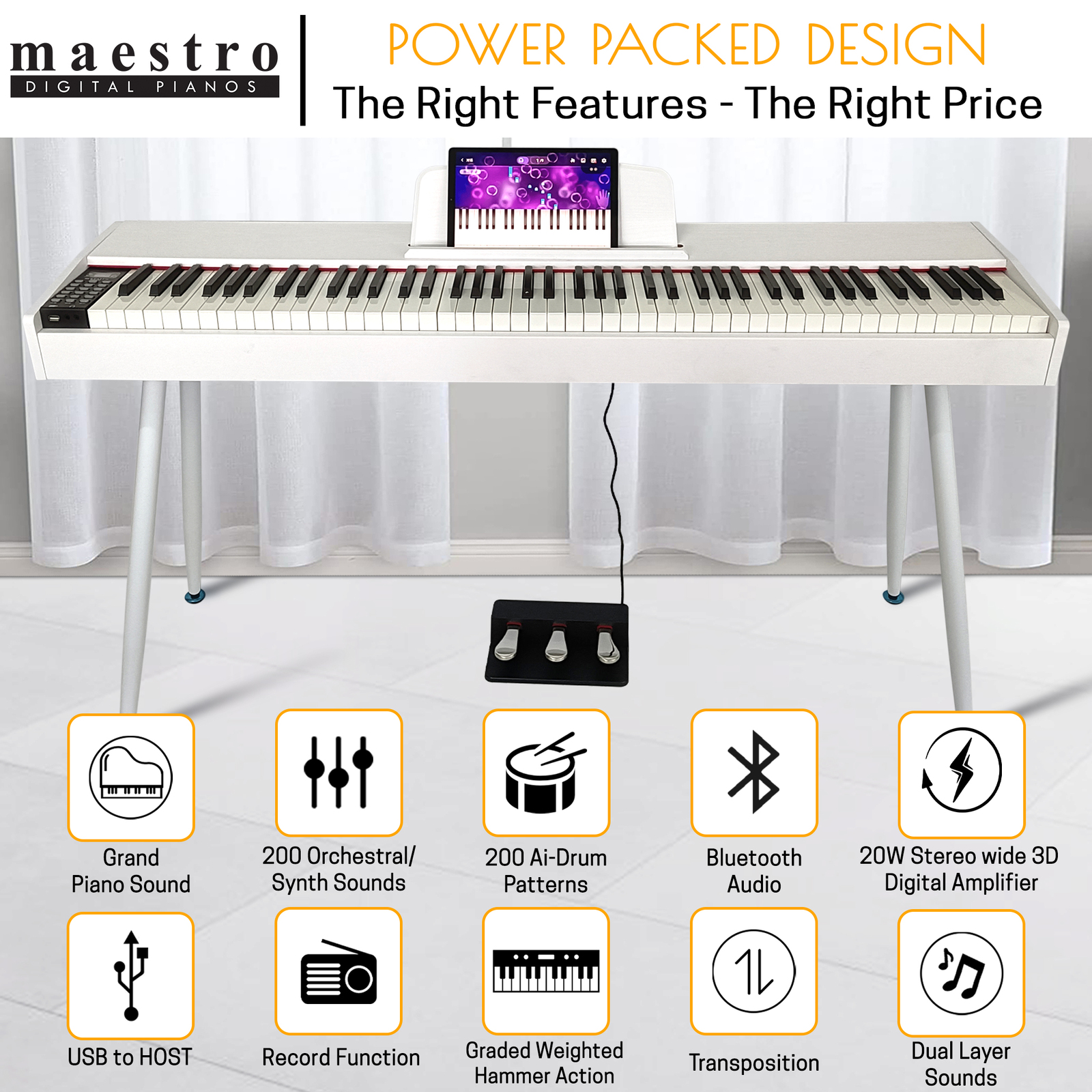 Maestro MDP210WH Contemporary 88-Key Weighted Hammer Action Digital Piano (White) w/ Iron Legs + 3 Pedals