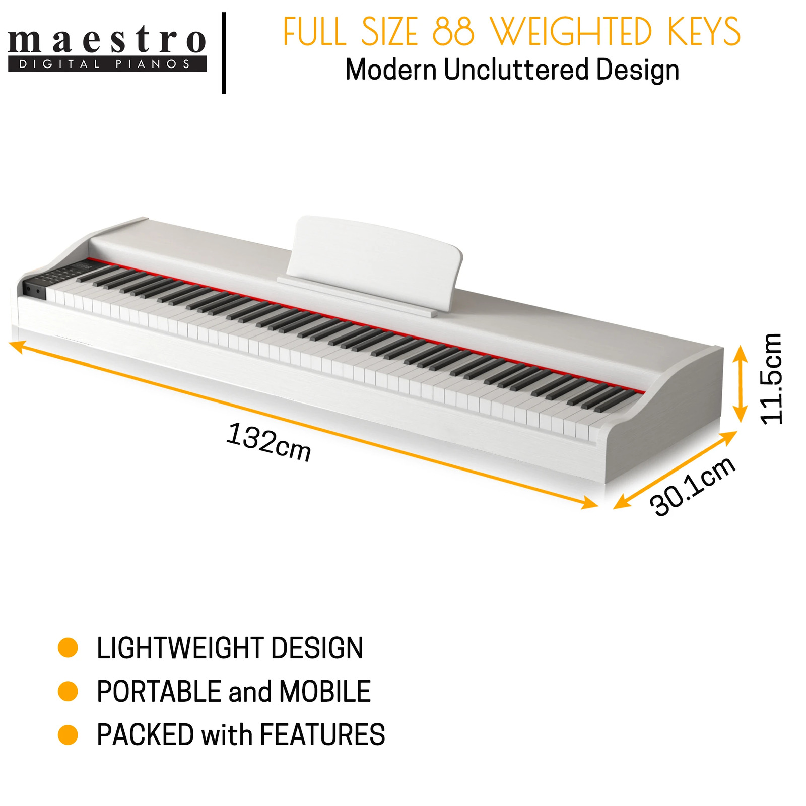 Maestro MDP300WH Beginner Portable Digital Piano (WHITE) w/ 88 Hammer Action Keys (stand sold separately)