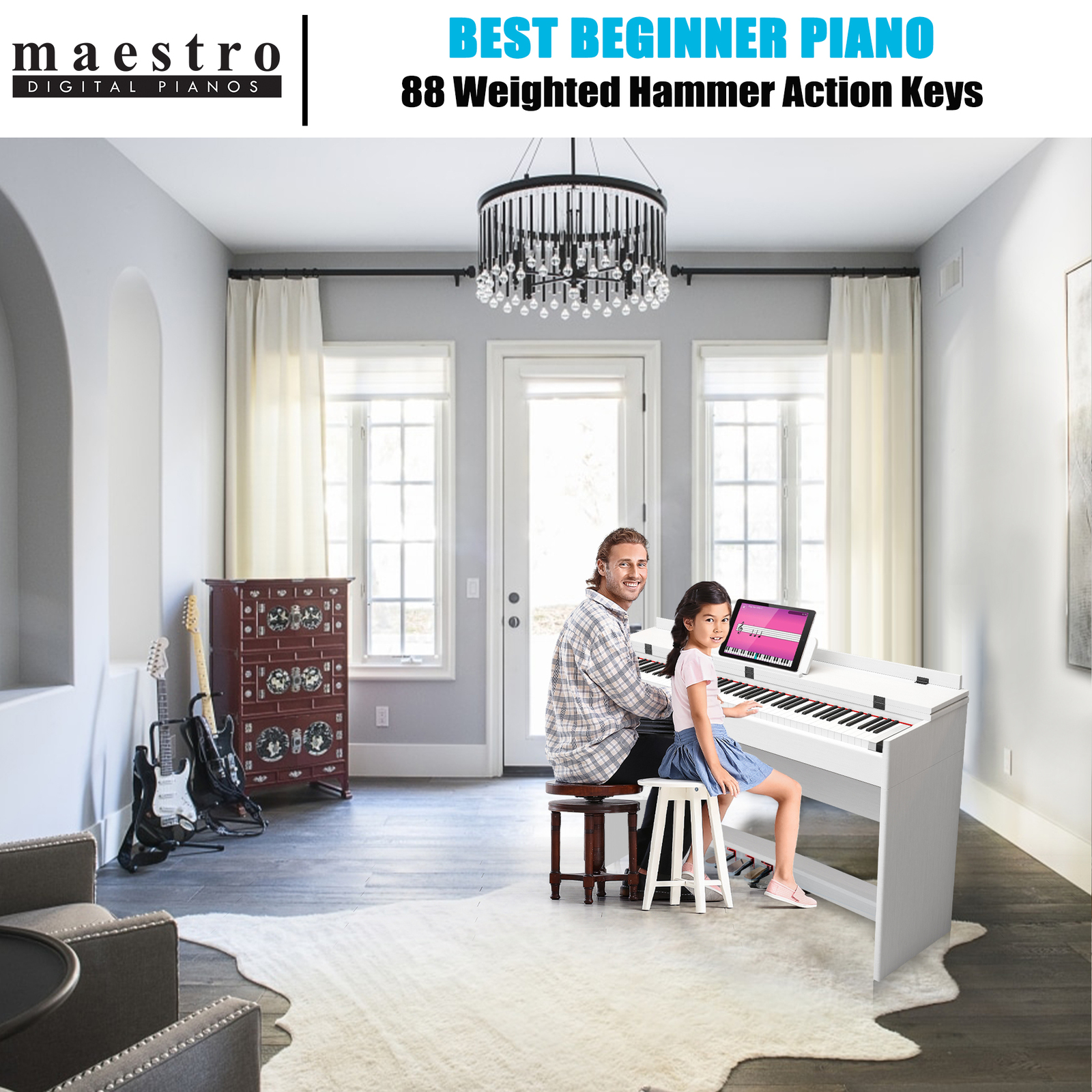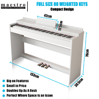 Maestro MDP400WH Compact Beginner Digital Piano (White) w 88 Weighted Hammer Action Keys & Flip-Down Lid - bench sold separately