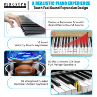 The European Sound Design team of the Maestro Hammer Action Digital Piano has combined the Rich Sound of a Japanese Grand Piano, a build in Intelli-Arranger with Recording & Bluetooth into one of the best value package piano in Australia.
