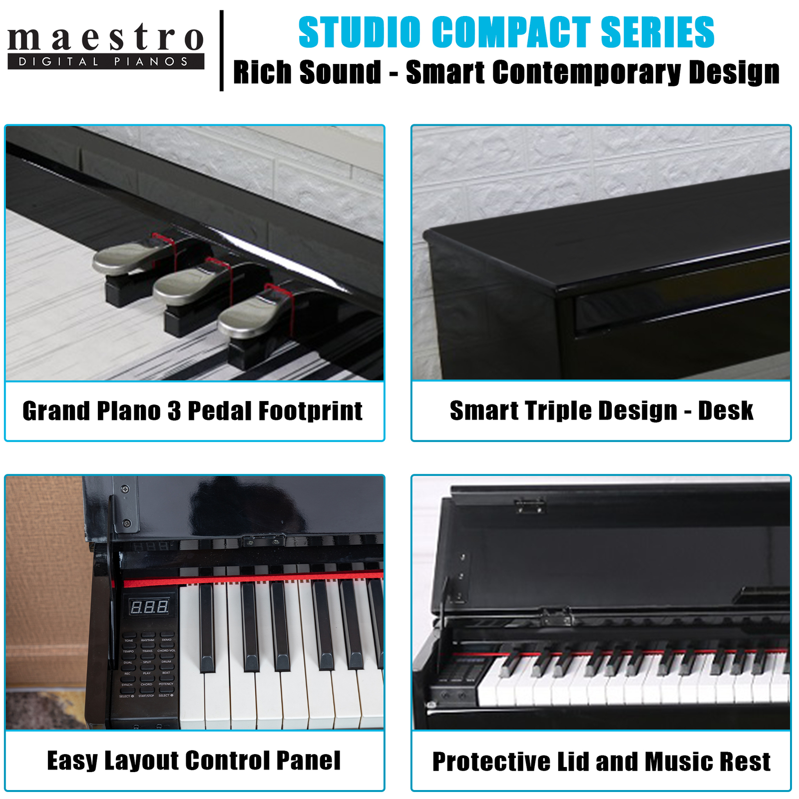 Maestro pianos provide great functionality and playability, giving students a pleasant experience beginning their musical journey in the world of playing, performing or composing - with a multitude of features as you will see below.