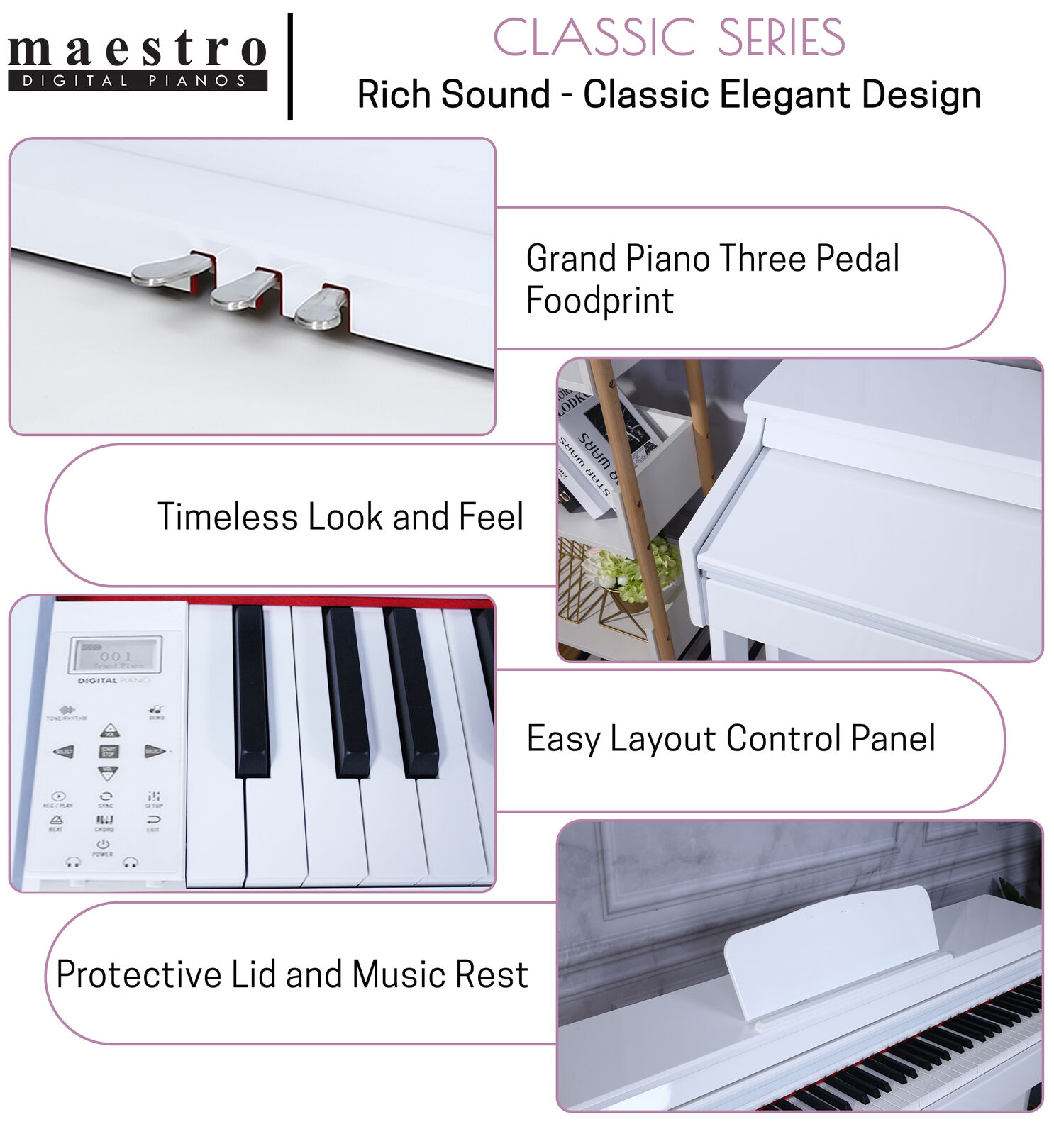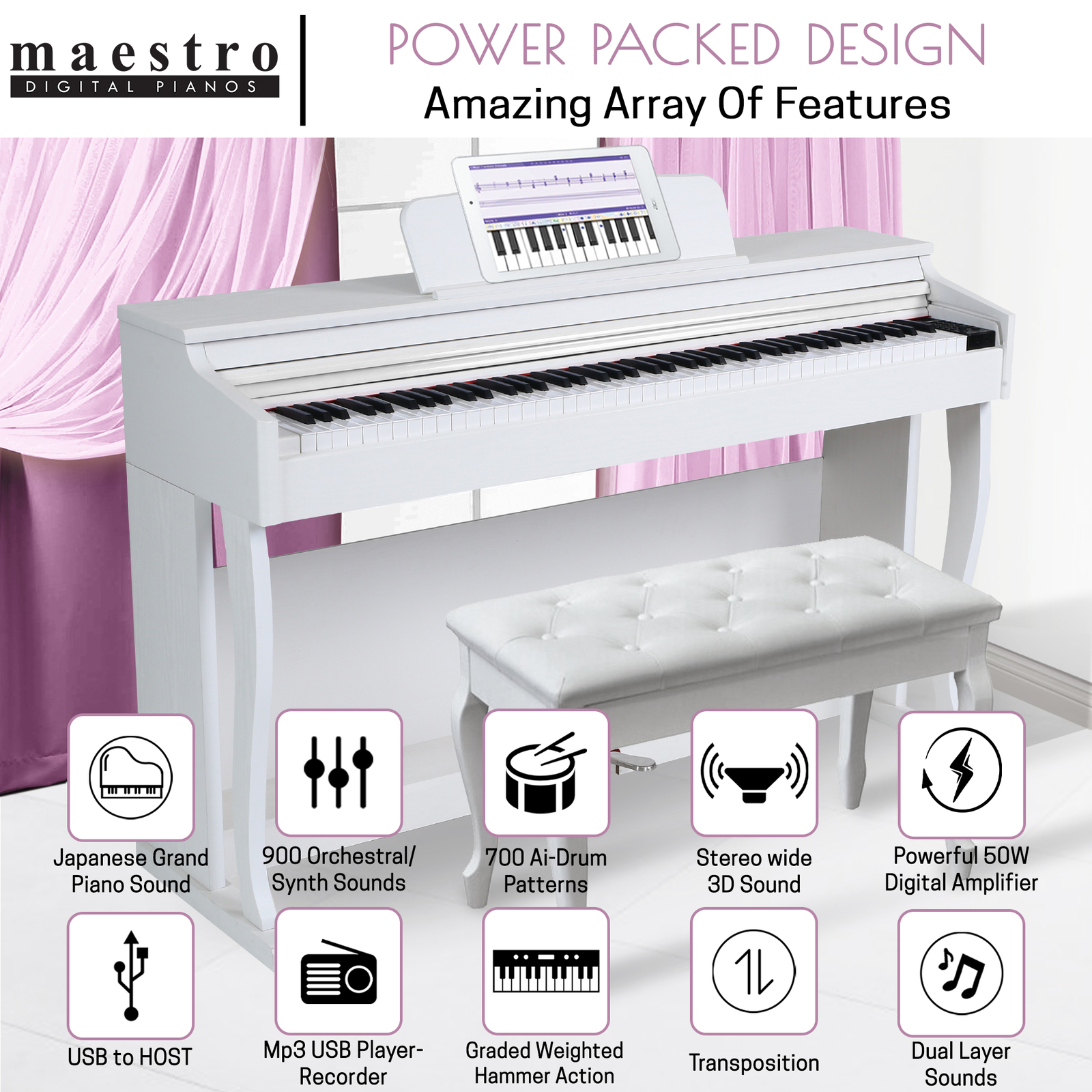 MAESTRO MDP600WH 88-Key Weighted Hammer Action Bluetooth Digital Piano with Sliding Lid