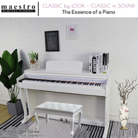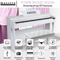 Capturing the sound of a famous Japanese Grand Piano, Maestro pianos gives beginners, singer-songwriters and hobbyists a pleasant playing, learning and listening experience at an unbeatable price. Start your musical journey in the world of playing, performing or composing with a multitude of features found on much more expensive pianos. The MDP600 comes equipped with a range of preset sounds and rhythms, as well as the automatic Intelli-Chord Arranger functionality so that you can feel what it's like to play with a band and sound like a pro with built-in drums, bass and other band instruments - perfect for songwriting and performing. The built-in USB Audio Recorder also allows you to record and store your songs or share your pieces with friends and family.