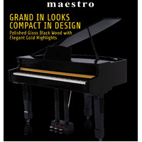 Maestro MGP1000PB Digital Electric Baby Grand Piano - 88 Weighted Hammer Action Keys (Polished Black)