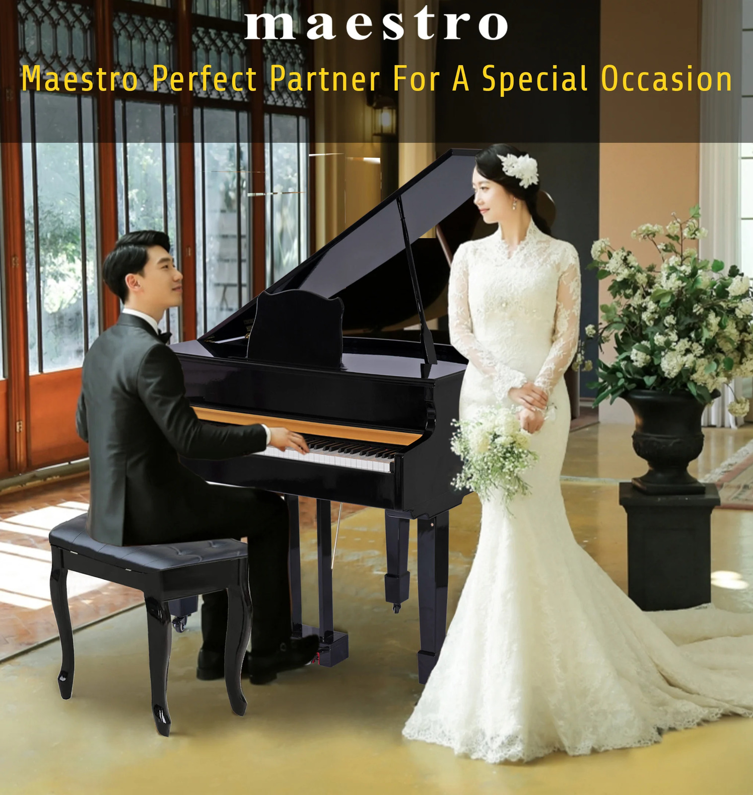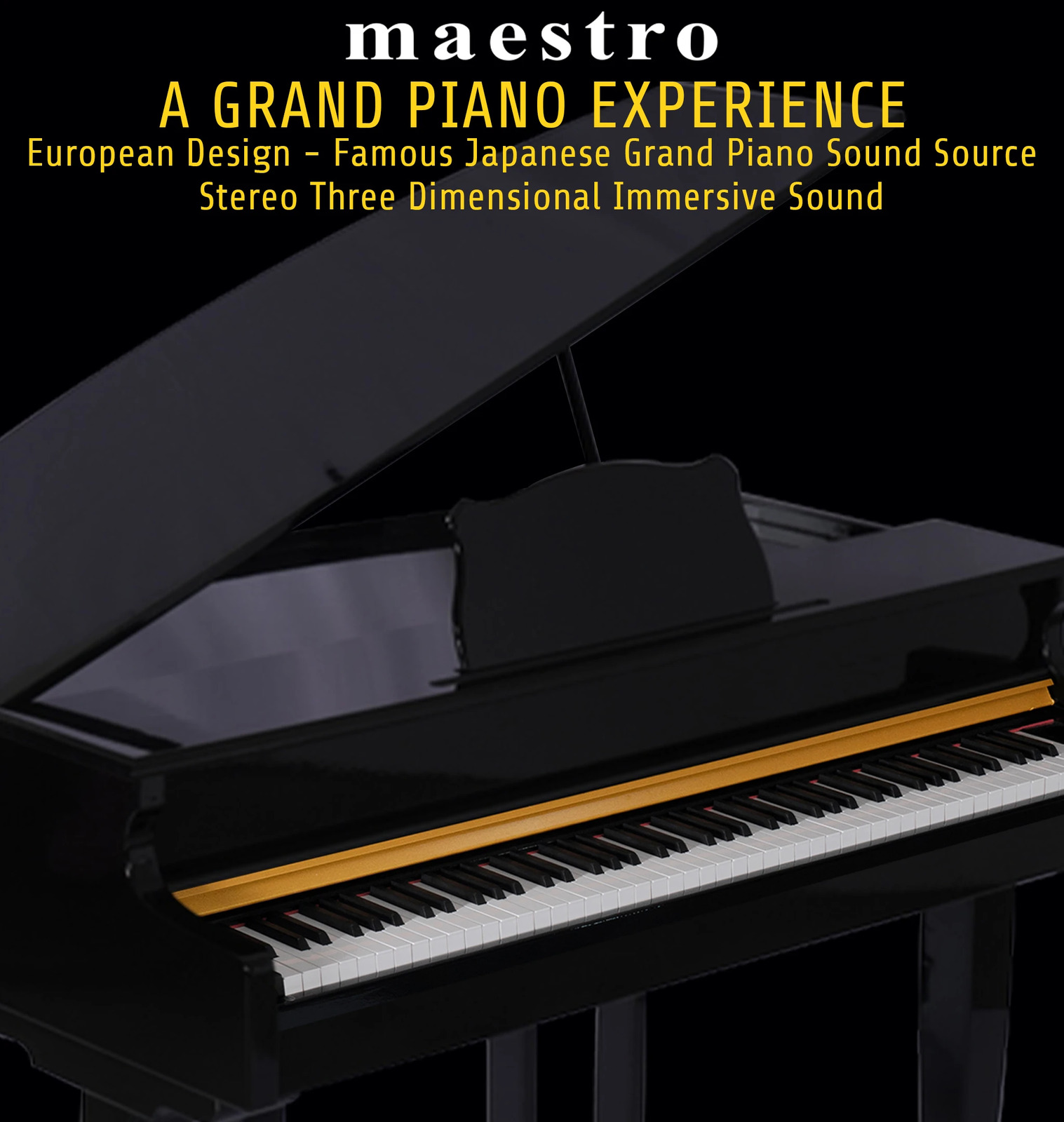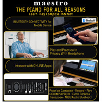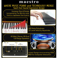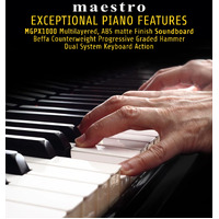 Maestro offers you a grand piano experience with the new 7 Expanded Sound Source Series Technology that has captured the sound of a famous Japanese Grand Piano and allows you to experience the state-of-the-art sampling technology from the Masters of European Sound Design teams. This allows a piano of this design and level of manufacturing to now compete with many higher-priced and well-branded instruments at an affordable pricepoint.