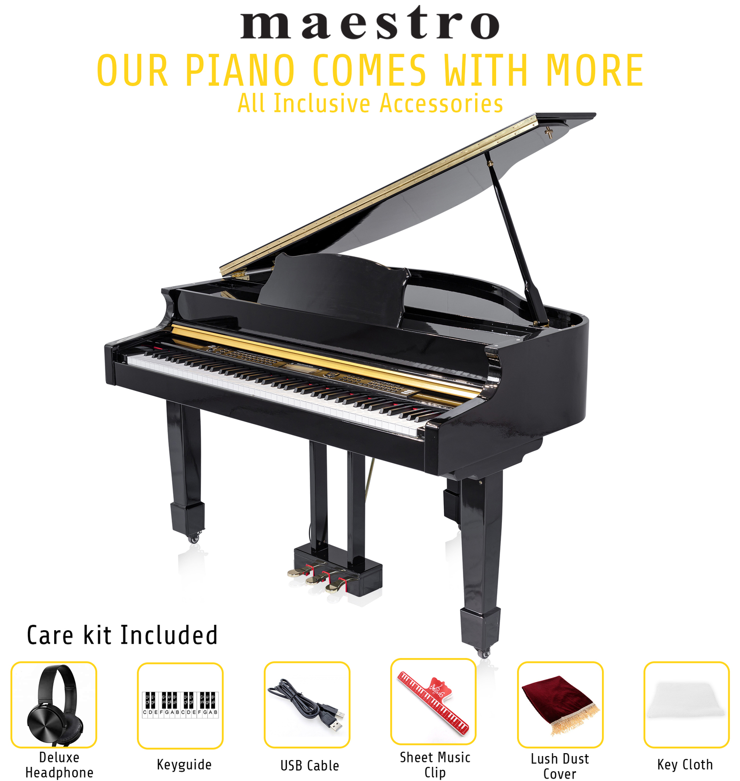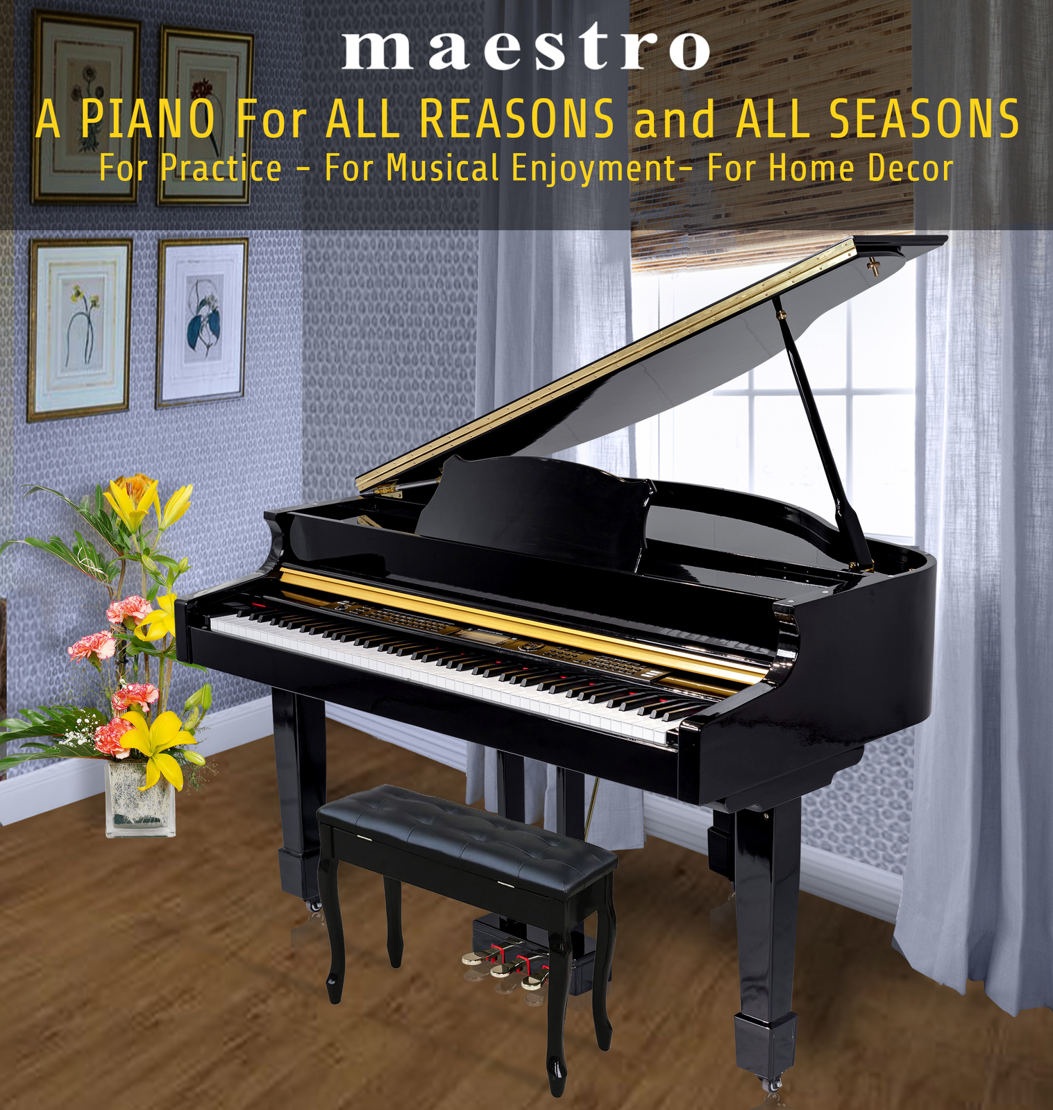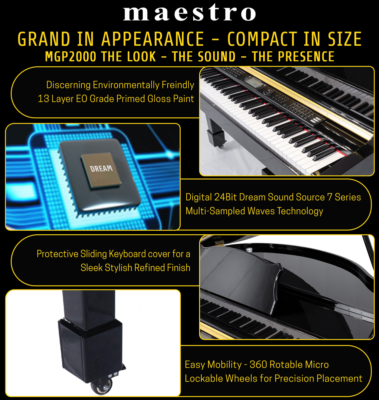 Maestro MGP2000PB Digital Baby Grand Intelligent Piano - 88 Weighted Graded Hammer Action Keys (Polished Black)