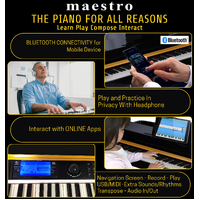 Maestro have not just stopped at the reproduction of a grand piano sound. They also have included the choice of 140 extra sounds, including electric pianos, acoustic nylon and steel string guitars, orchestral intruments such as lush strings, woodwinds, punchy brass, and modern synths sounds of analog sounding bass Sawtooth lead and pad sounds.