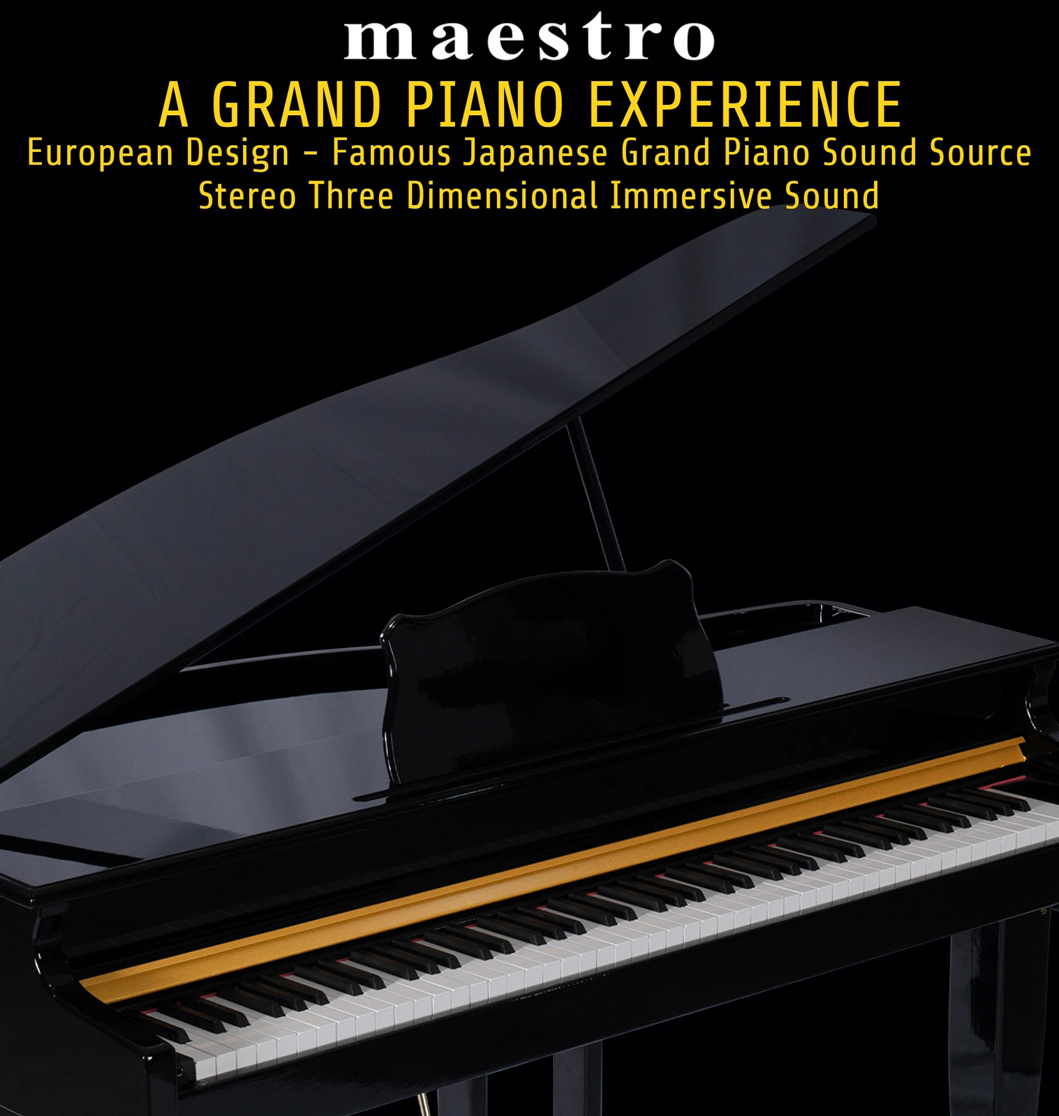 Maestro offers you a grand piano experience with the new 7 Expanded Sound Source Series Technology that has captured the sound of a famous Japanese Grand Piano and allows you to experience the state-of-the-art sampling technology from the Masters of European Sound Design teams. This allows a piano of this design and level of manufacturing to now compete with many higher-priced and well-branded instruments at an affordable pricepoint.